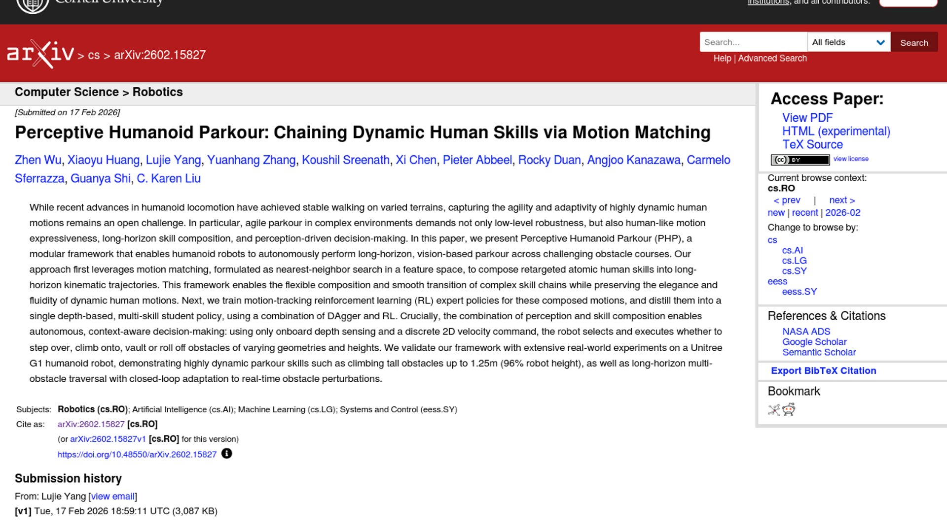 Amazon FAR and UC Berkeley researchers introduced Perceptive Humanoid Parkour, a preprint framework that lets a Unitree G1 chain human-inspired vaulting, climbing, rolling, and obstacle traversal using onboard depth sensing. The standout result is not just flashy stunts, but closed-loop skill selection across longer parkour sequences, including climbs up to 1.25 meters.