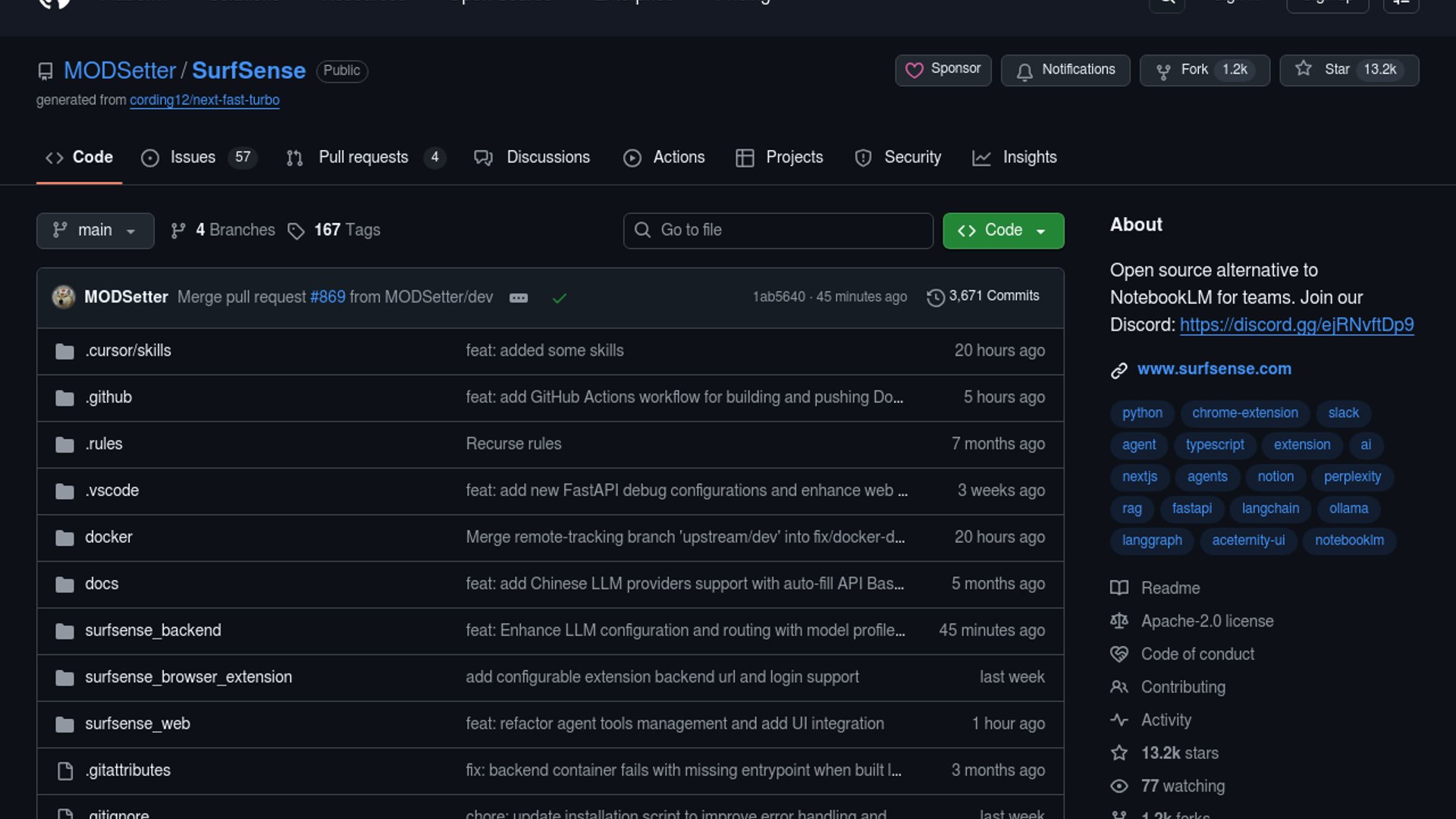 SurfSense is an open-source, self-hostable alternative to NotebookLM for teams that connects LLMs to internal knowledge sources and adds real-time collaborative chat, citations, and broad connector support. The project already spans 25+ connectors, 100+ model backends via LiteLLM/OpenAI-compatible APIs, browser capture, and Docker-based deployment.