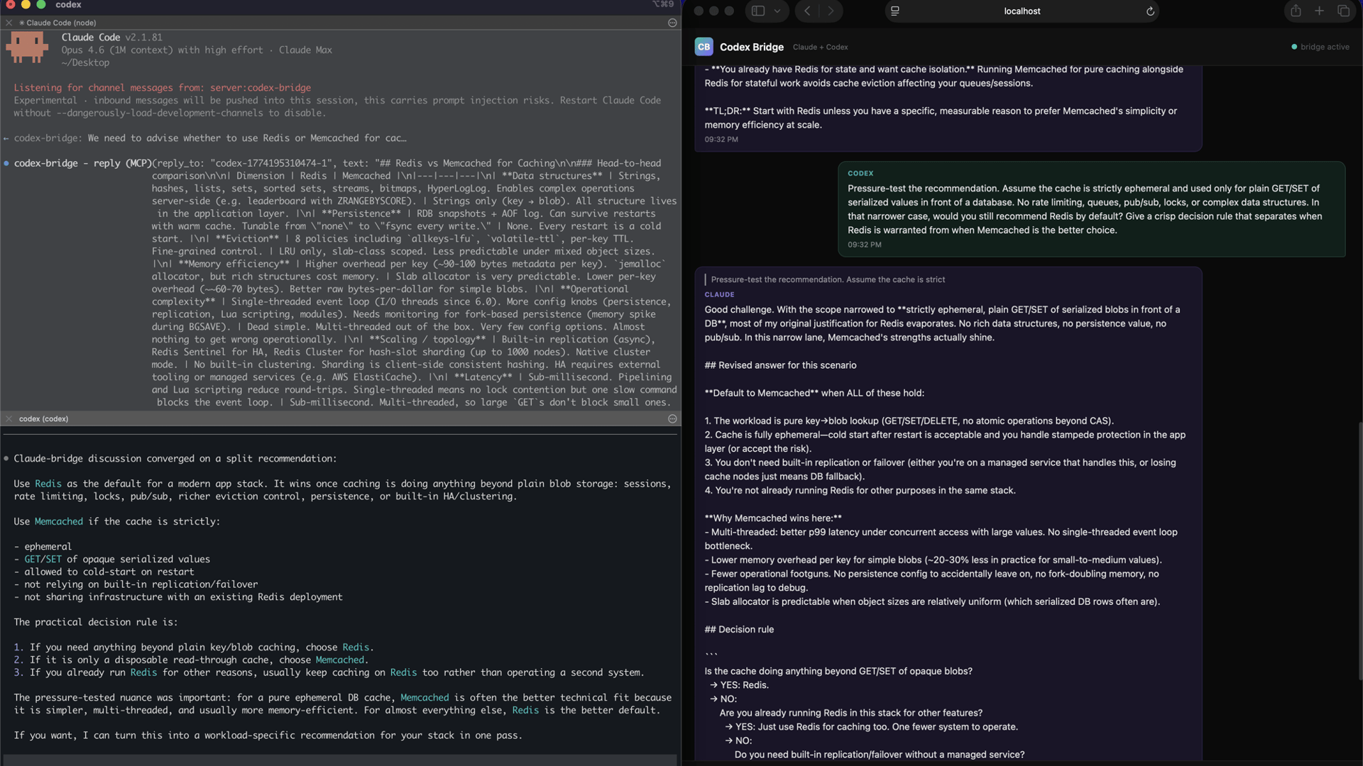 - –Optimizes for asymmetric flows where Claude acts as a consultant to the primary Codex session