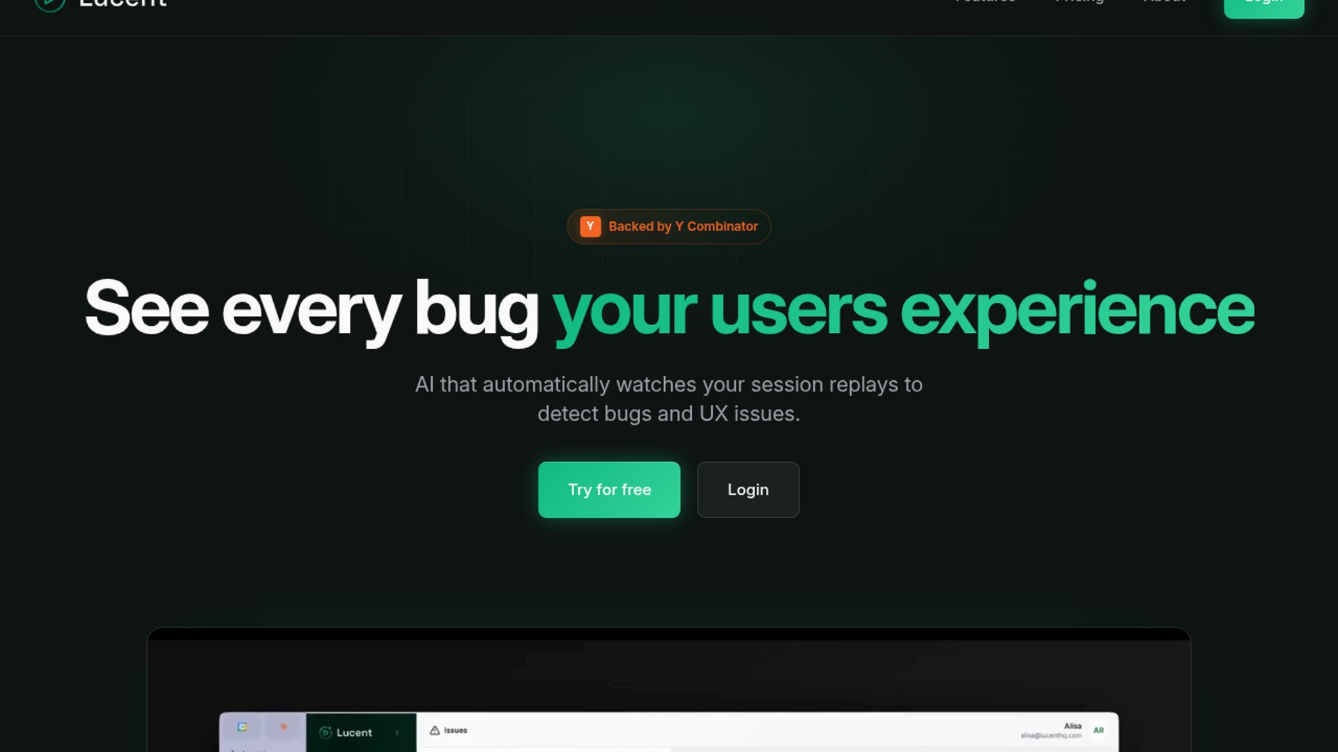 Lucent is an AI bug-detection layer for session replays. It watches user sessions continuously, flags bugs, UX issues, and friction points in real time, and positions itself as a tool for engineering teams that already rely on replay data but need a faster way to surface actionable problems. The homepage also frames it as YC-backed and integrated into modern engineering workflows.