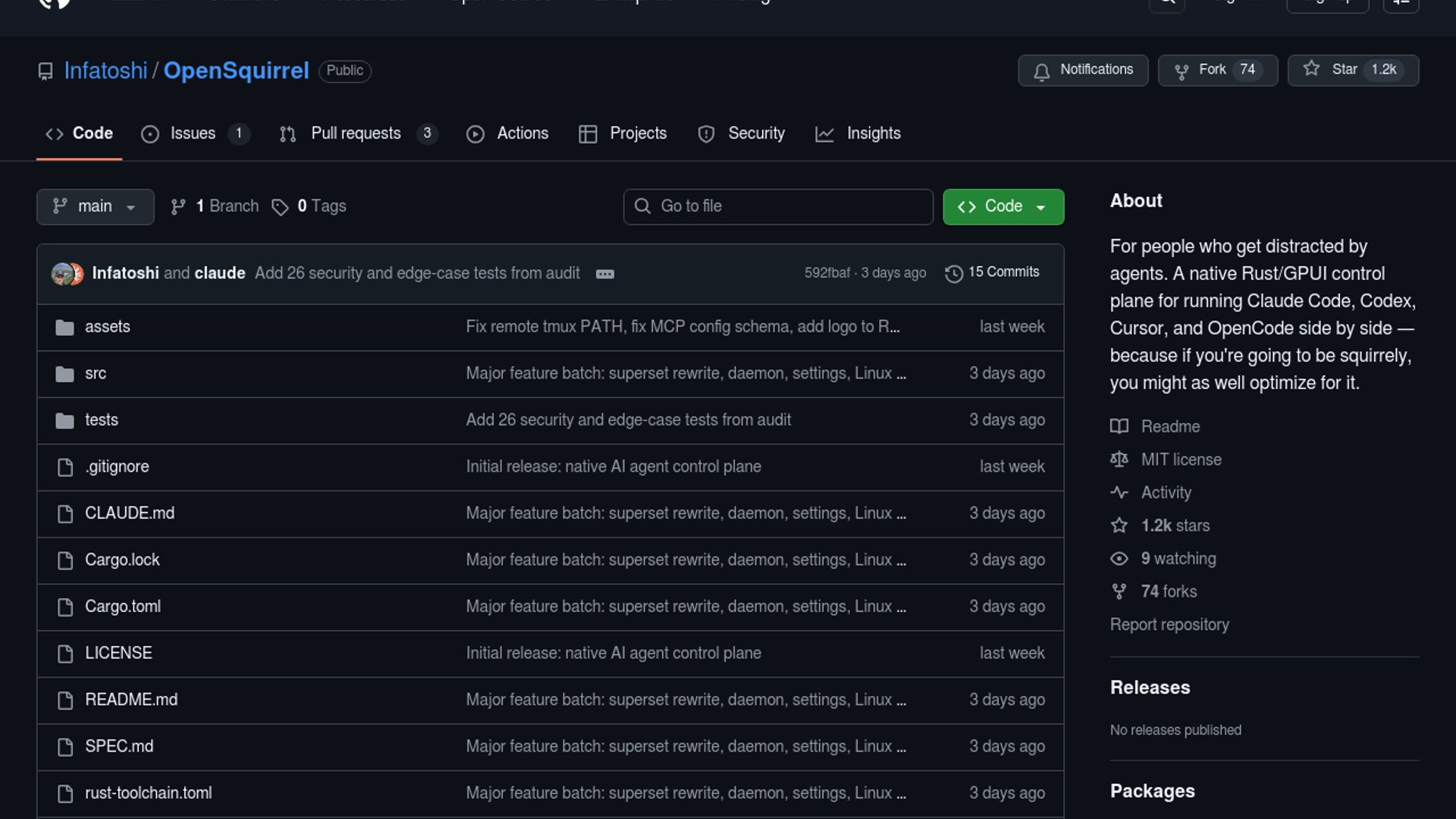 OpenSquirrel is a Rust and GPUI-based desktop control plane for running AI coding agents side by side in one interface. The project supports Claude Code, Codex, Cursor, and OpenCode, and adds coordinator/worker delegation, SSH-based remote machine targeting, MCP integration, and persistent multi-turn sessions so agent work can survive restarts.