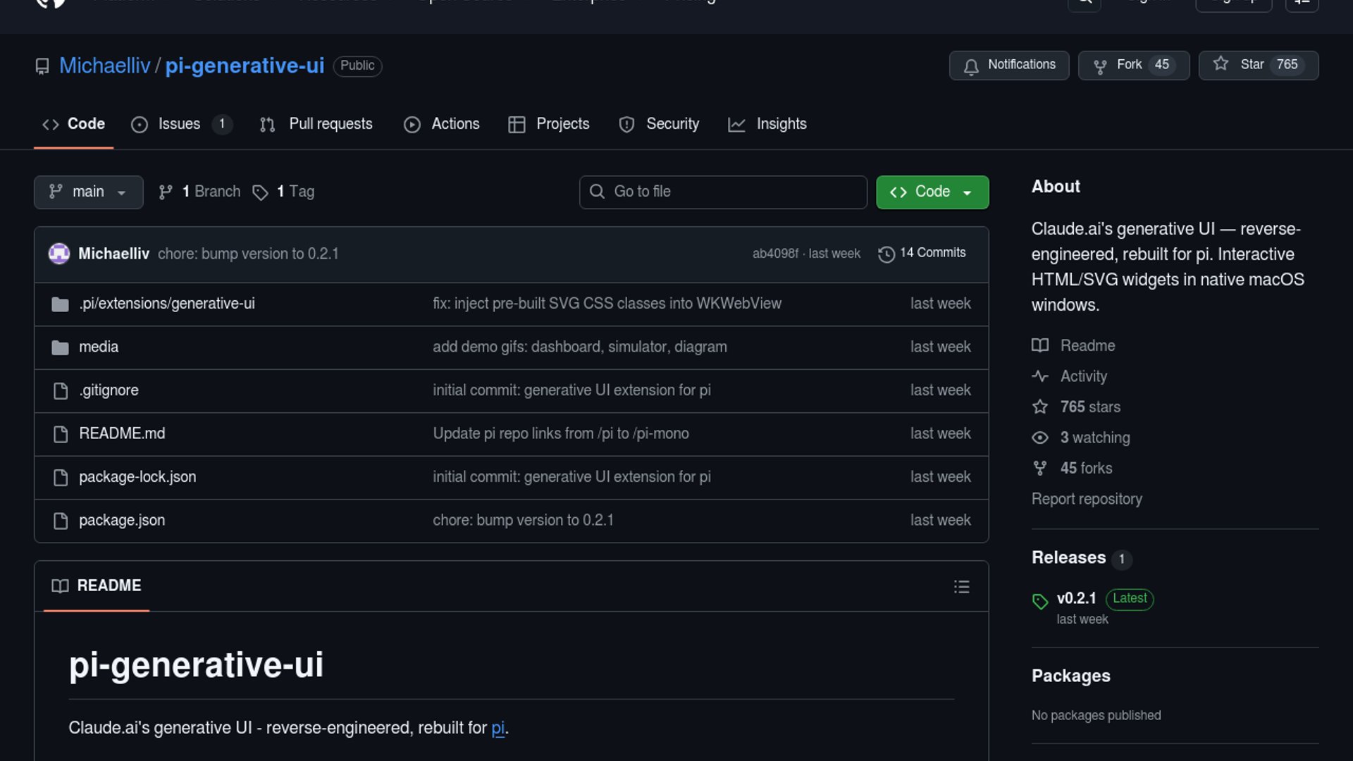 pi-generative-ui is a reverse-engineered port of Claude-style generative UI for pi, letting the agent stream interactive HTML and SVG widgets into native macOS windows instead of plain text. It turns conversational prompts into live calculators, charts, diagrams, and other browser-like UI.