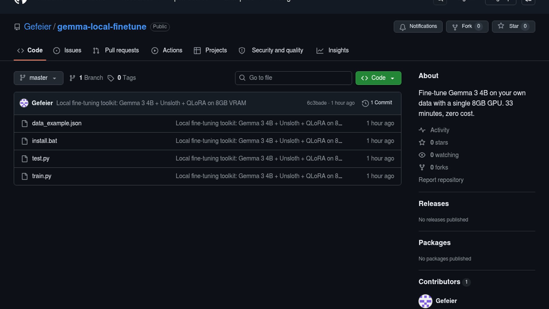 Gemma-local-finetune trains 4B watcher in 33 minutes