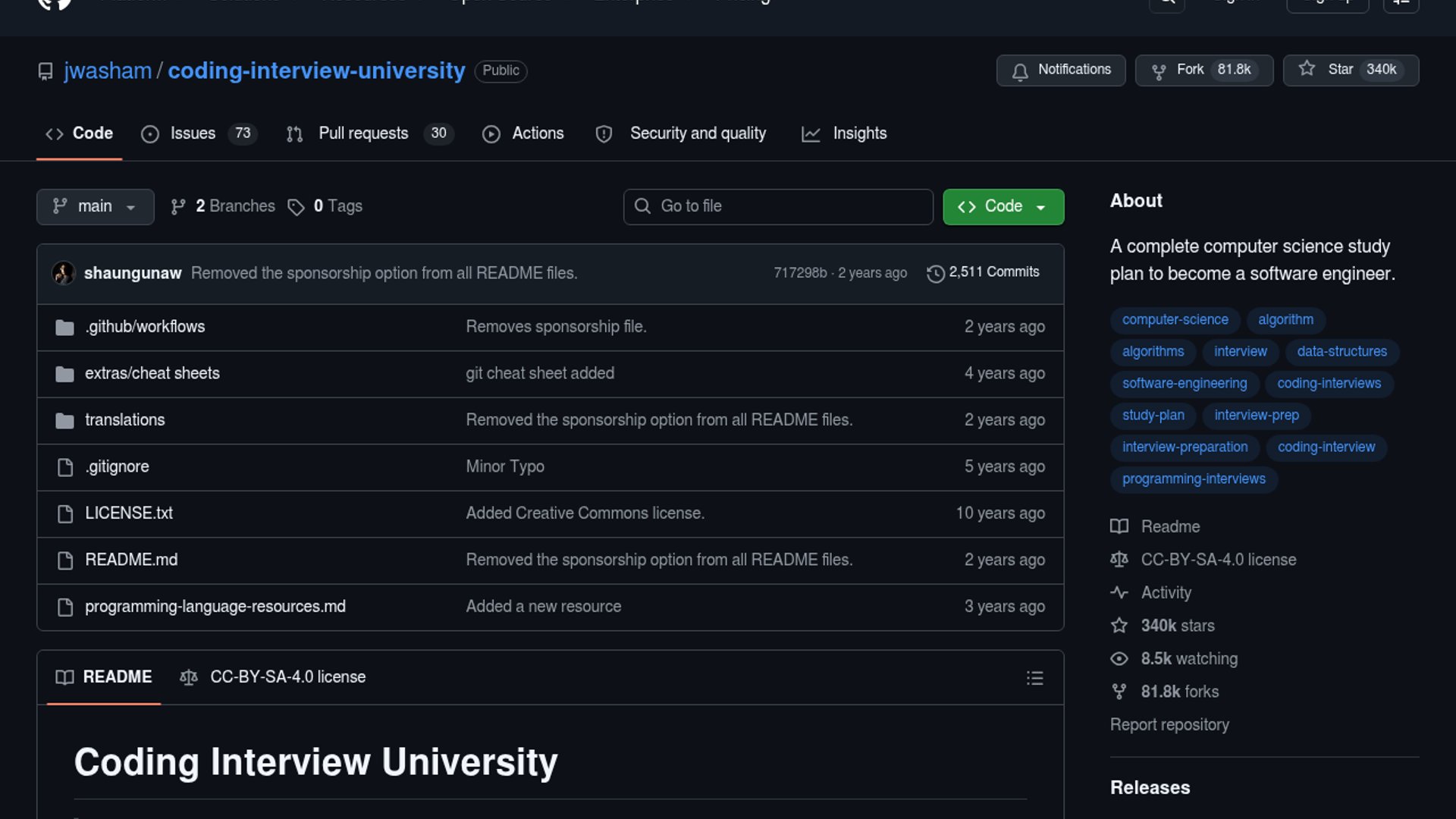 - –Its popularity (340k+ stars) indicates a persistent shift toward non-traditional education paths in the software industry.