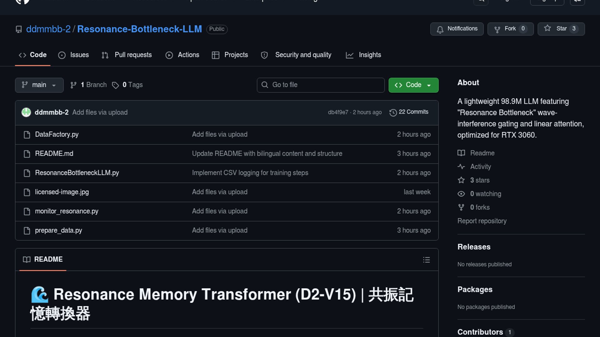 Resonance-Bottleneck-LLM is an experimental ~99M-parameter LLM architecture that replaces discrete MoE routing with phase-based gating, EMA memory decay, and synchronized normalization. It is aimed at consumer-GPU training, with the author claiming a 3060-friendly proof of concept on a small corpus.