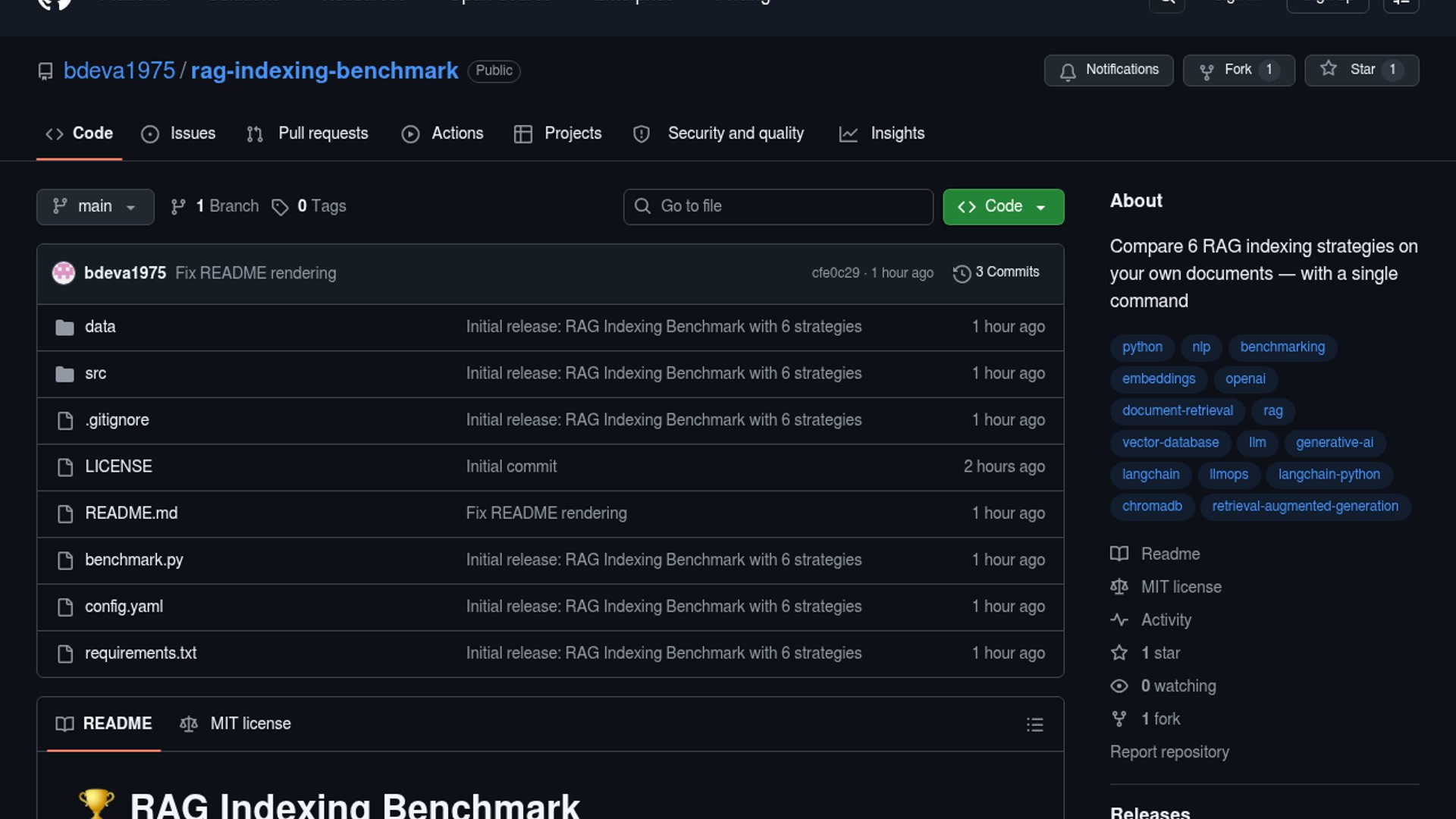 RAG Indexing Benchmark is a new open-source utility that compares six distinct indexing strategies against your own documents with a single command. It outputs a ranked leaderboard scoring each approach on relevance, faithfulness, and completeness to help you choose the optimal retrieval method for your specific dataset.