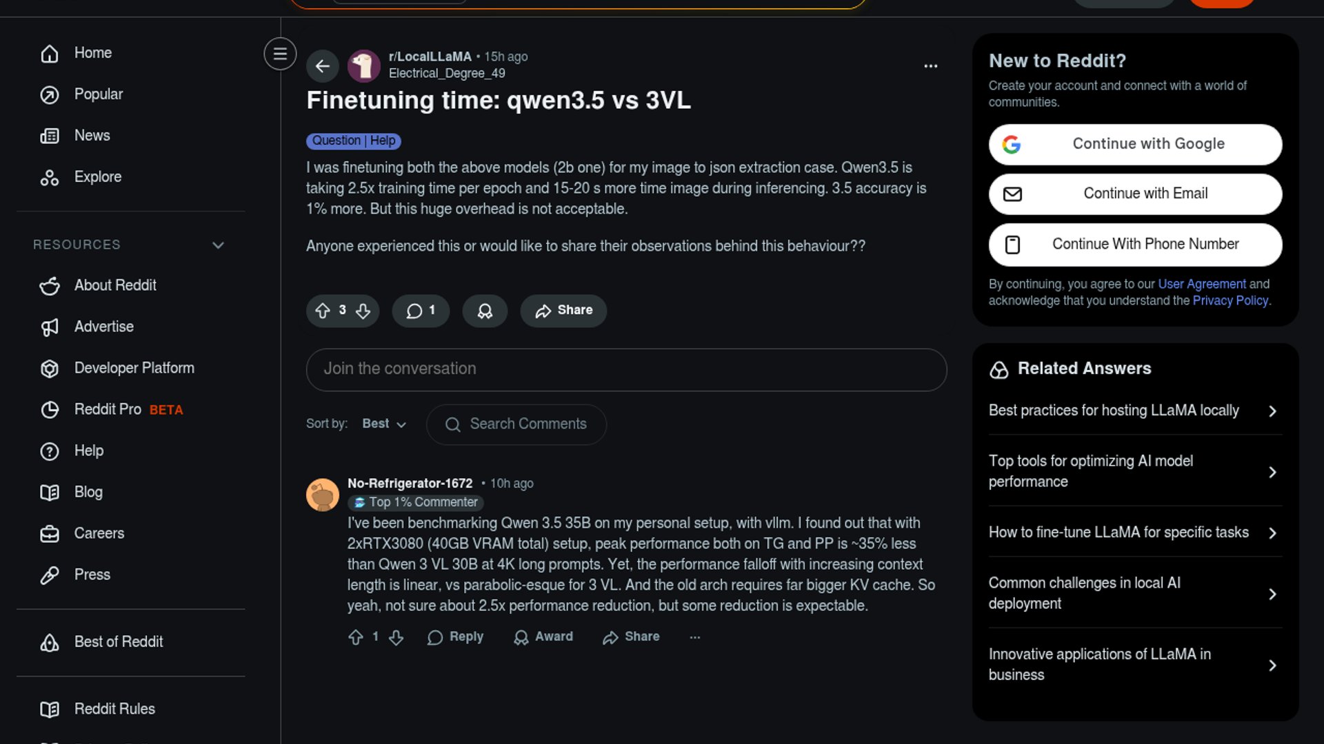 A user fine-tuning 2B Qwen models for image-to-JSON extraction reports Qwen3.5 taking about 2.5x longer per epoch and adding 15-20 seconds per image at inference, while improving accuracy by only 1%. The post frames that tradeoff as too expensive for the gain.