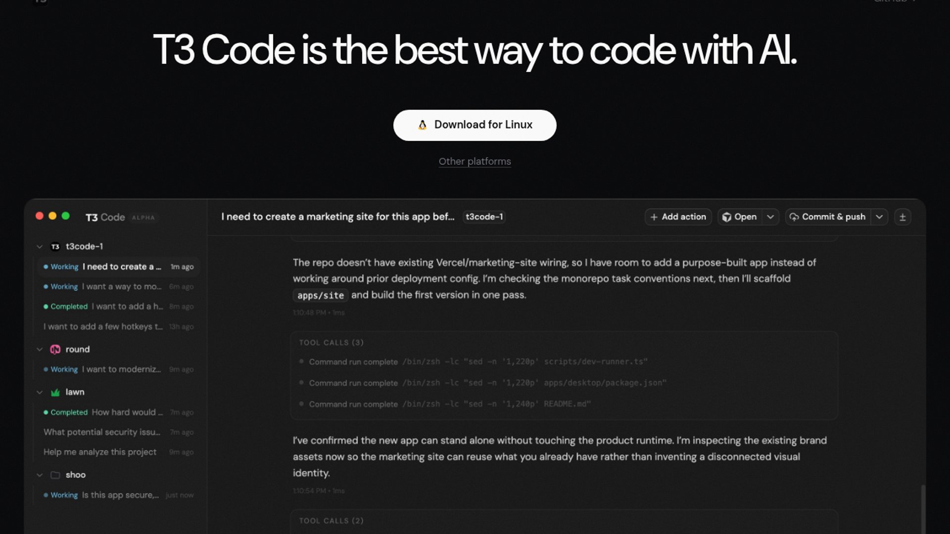 T3 Code solves the "waiting for agents" bottleneck by leveraging Git worktrees, a powerful but often underutilized Git feature. Isolated worktrees prevent agents from stepping on each other or the developer's main branch, while the BYOK (Bring Your Own Key) model avoids high markups associated with proprietary platforms. Integration with standard CLIs like Claude Code makes it a flexible front-end rather than a walled garden, and built-in diff viewers and one-click PR creation streamline the human review process. The lightweight Electron interface is designed for high-performance "vibe-coding" without terminal-only limitations.