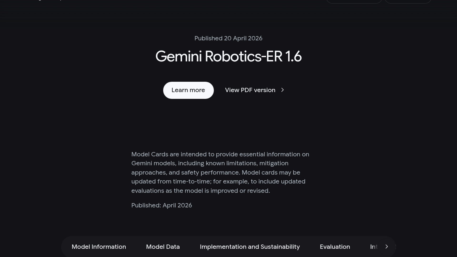 Google’s model card says Gemini Robotics-ER 1.6 is trained on Gemini 3.0 datasets plus additional embodied-reasoning datasets, but it does not disclose a clean public recipe for whether those are real robot trajectories, simulation runs, demonstrations, or labeled perception corpora. The clearest public clue is that the model is a VLM for high-level robot reasoning, not a low-level VLA controller, with inputs like text, images, audio, and video and text outputs for planning, pointing, success detection, and instrument reading.