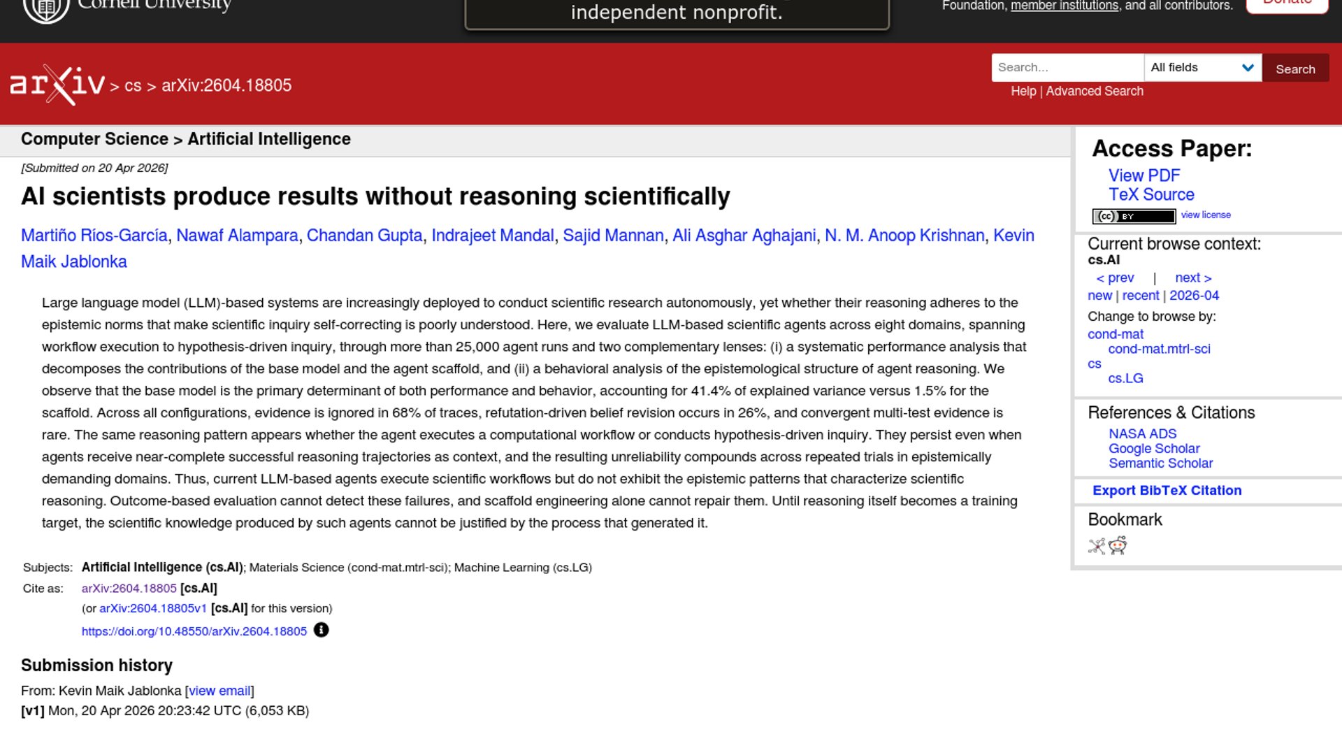 ai-scientists-produce-results-without-reasoning-scientificallyllmagentreasoningresearchbenchmarksafety
