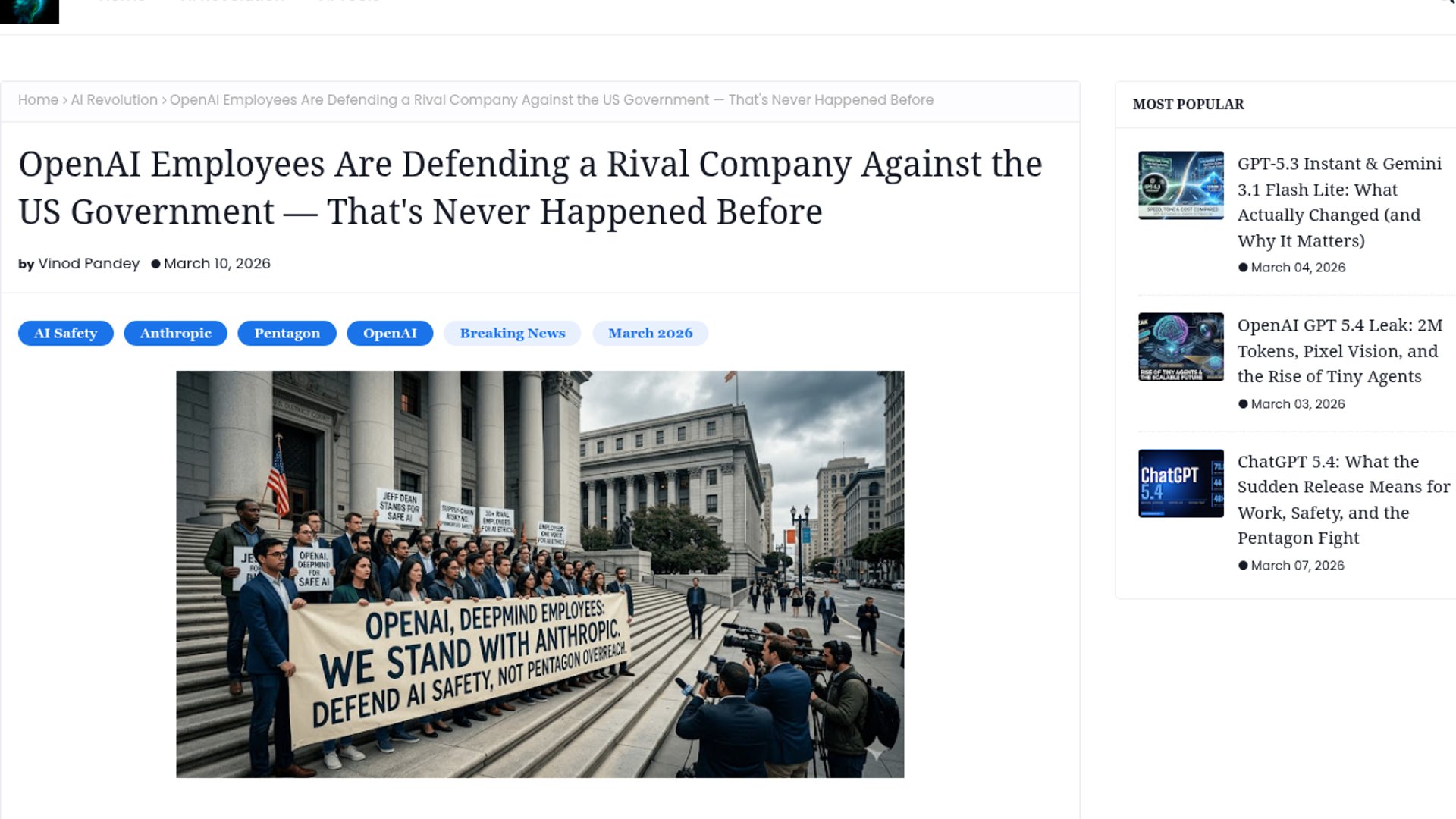 A report says more than 30 OpenAI and Google DeepMind employees filed an amicus brief backing Anthropic after the Pentagon blacklisted the company over its refusal to allow Claude for domestic mass surveillance and fully autonomous weapons. For AI developers, the real issue is whether model makers can keep hard safety guardrails in place once governments and large enterprises want broader access.
