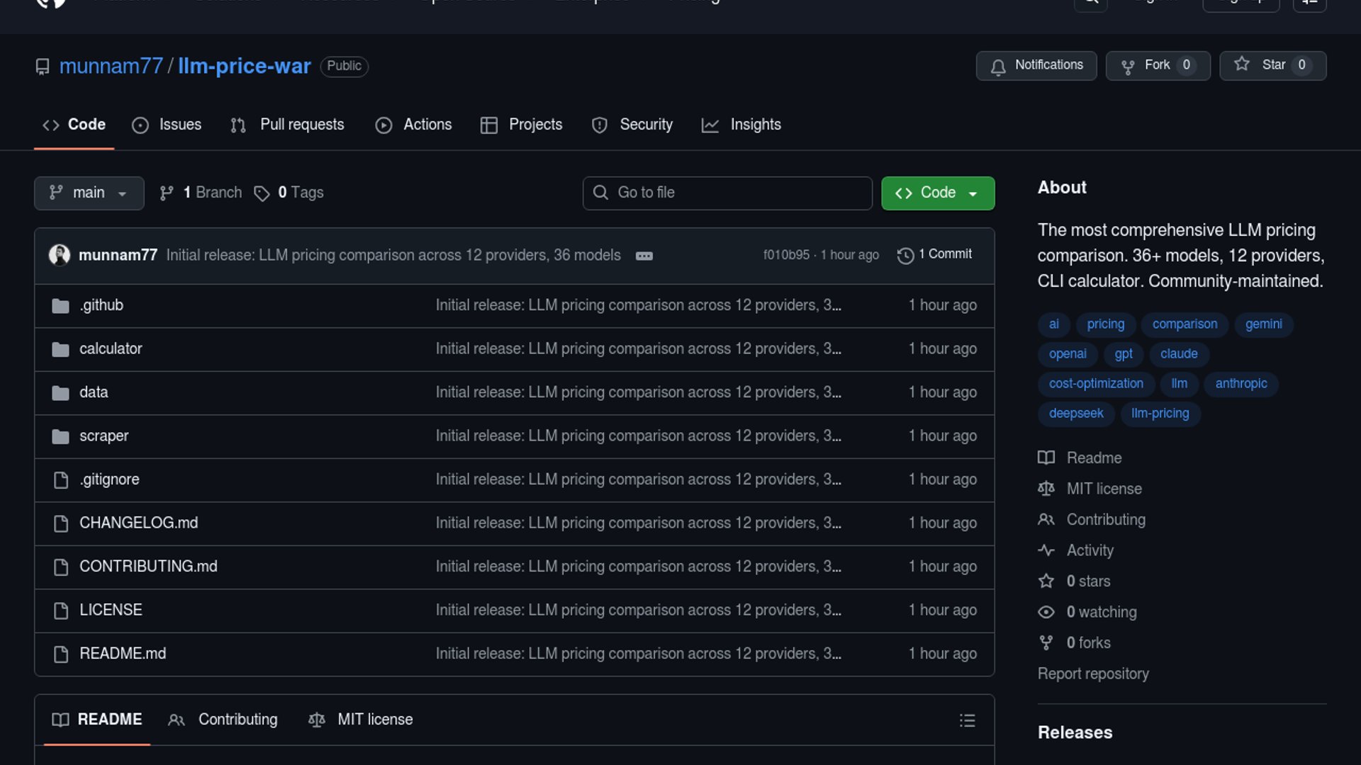 LLM Price War is a new open-source pricing tracker for 36-plus models across 12 providers, bundling side-by-side rate tables, task-level cost breakdowns, and a zero-dependency Python CLI calculator. It turns the messy job of checking OpenAI, Anthropic, Google, DeepSeek, Groq, and others into something developers can actually script against.
