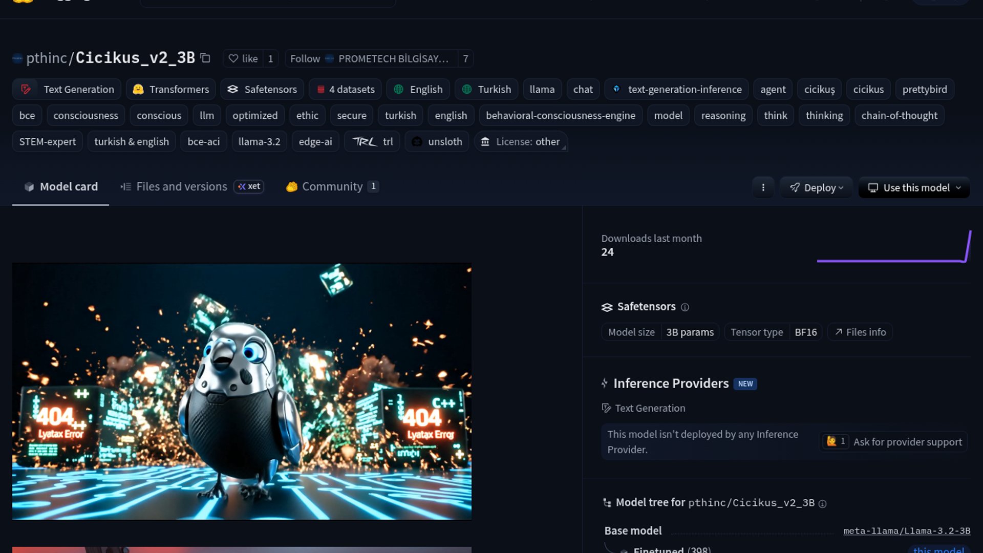 Prometech has released Cicikuş v2-3B, a Hugging Face Llama 3.2 3B fine-tune pitched for local inference on roughly 4.5GB VRAM, with Turkish/English support and a 26.8k-row reasoning dataset. The release leans heavily on proprietary “Behavioral Consciousness Engine” branding, but the concrete developer takeaway is a small reasoning-focused model with published baseline evals and downloadable weights.