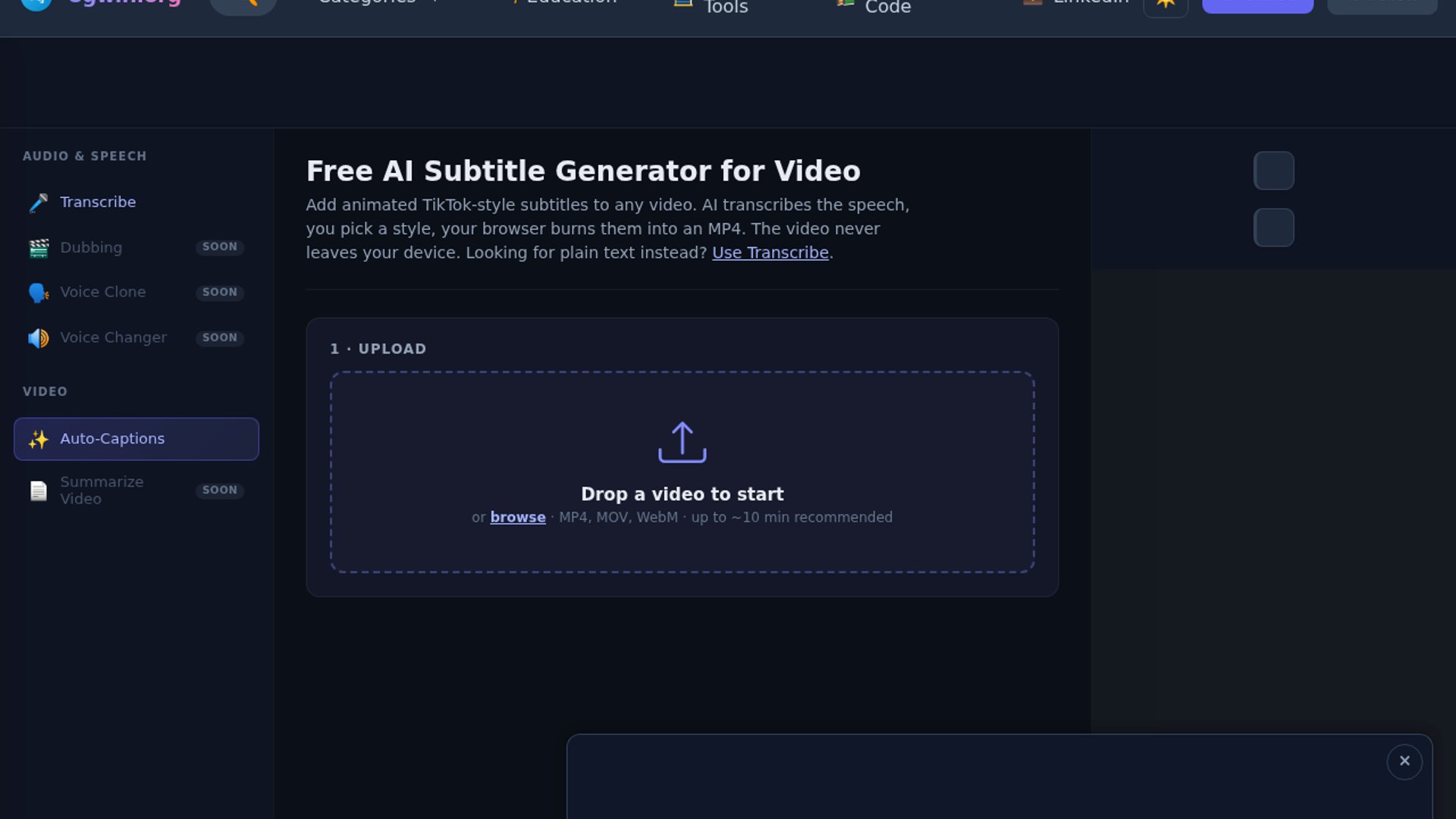 8gwifi.org launched a free browser-based subtitle tool that lets users upload a video, generate AI captions, style them, and export a captioned MP4. The app renders the final video in the browser with WebCodecs, while the Reddit post says transcription runs through the creator's Whisper setup exposed from a Mac.
