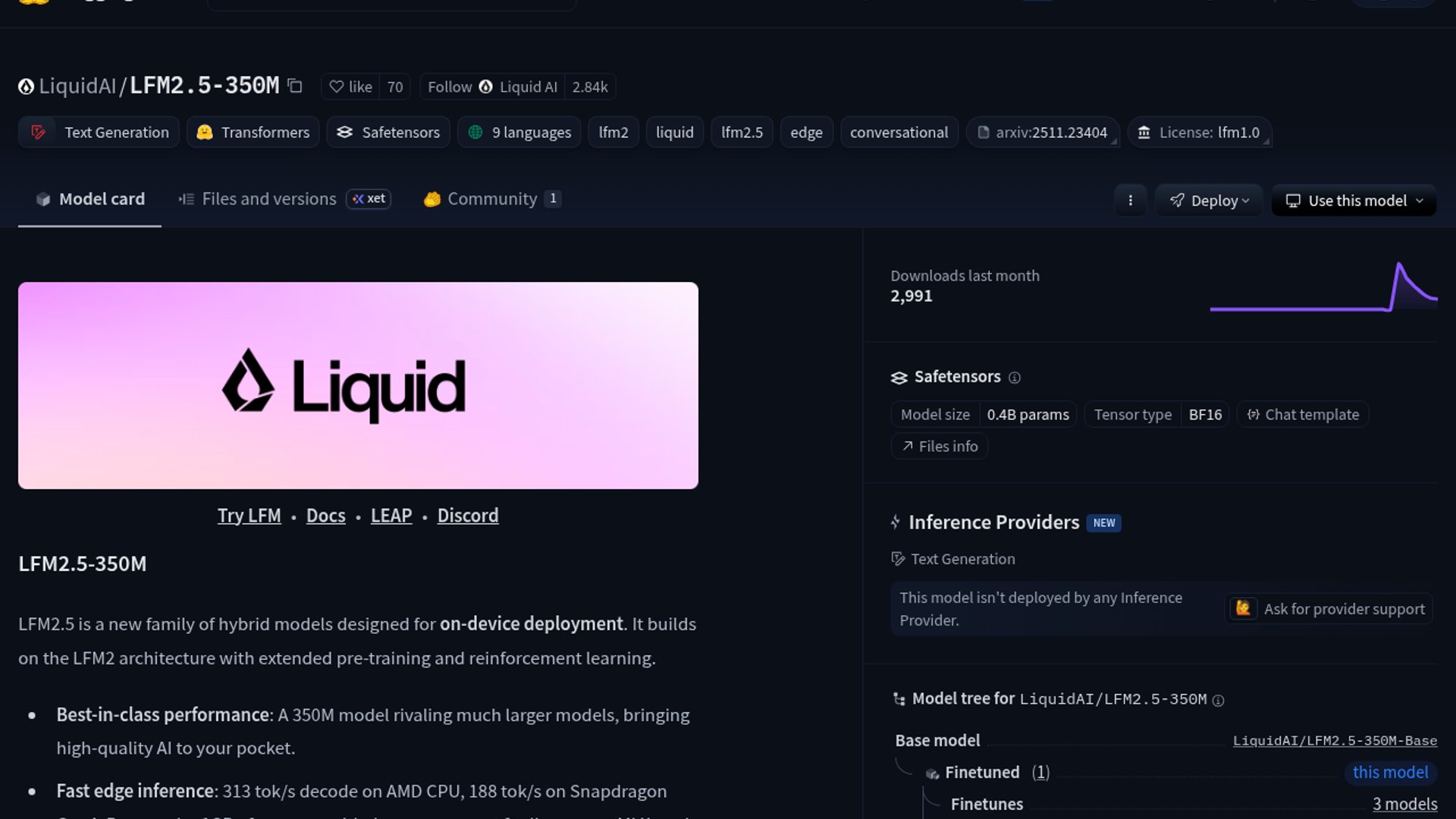 - –Liquid’s own docs position the 350M tier as best for edge deployment and narrow tasks, which is the right frame for evaluating this.