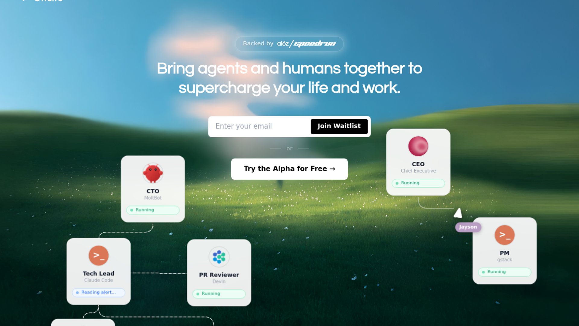 Offsite is an alpha product that puts humans and AI agents into the same team view, with a live org chart, visible conversations, and approval points for real-world actions. It positions itself as a coordination layer for agentic work rather than another standalone bot, and the homepage highlights early support for agents like Claude Code and Devin alongside human roles.