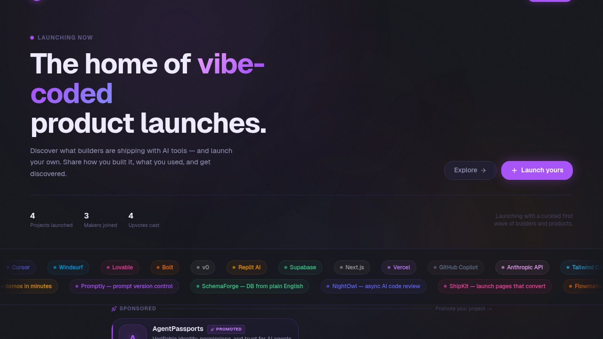 VibecodedHub is a new discovery platform for AI-built products, with feeds for trending, new, and featured launches. Makers can submit a project with a build story, tools used, and workflow notes so vibe-coded work stays discoverable after launch day.