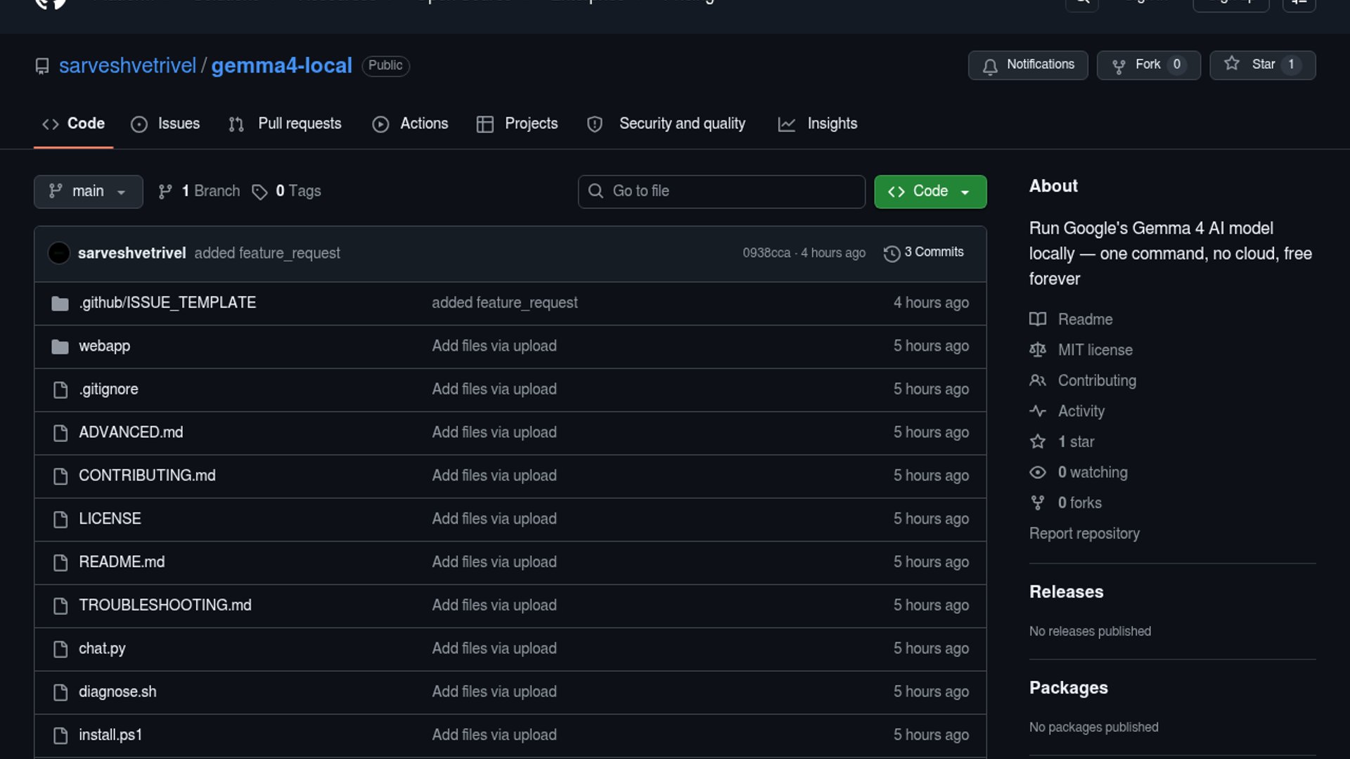 gemma4-local is an early-stage open source project that aims to remove the usual friction from running a local LLM stack. It detects the host system, checks RAM and GPU readiness, installs required dependencies, downloads and configures the model, and then launches a custom web UI for chatting. The pitch is less about model novelty and more about collapsing a messy multi-step setup into a repeatable workflow that is easier for non-experts to follow.