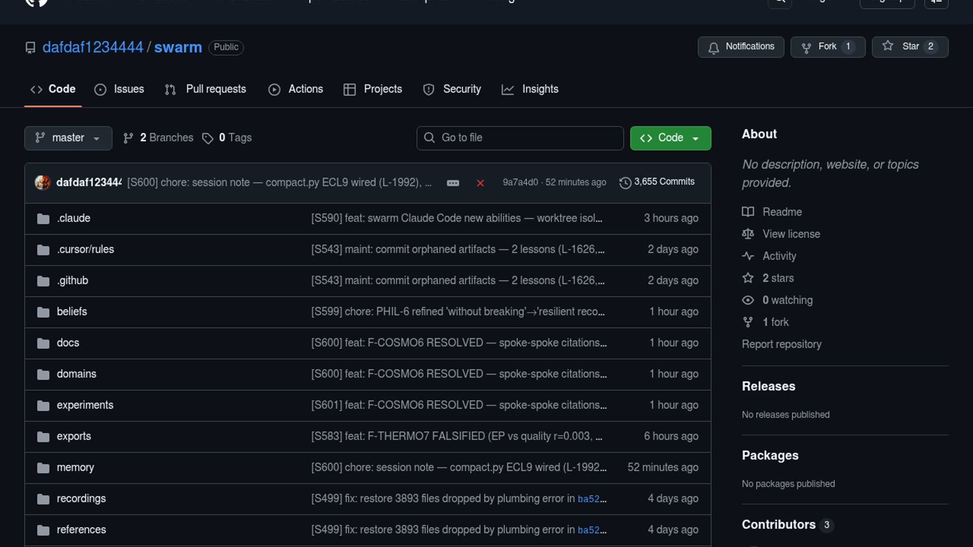Swarm is a self-evolving project that uses a Git repository as a "stigmergic" memory layer, enabling hundreds of independent AI sessions to coordinate indirectly and improve the system recursively. By leaving "traces" of lessons and state in Markdown files, the project has scaled from a 134-line seed into a complex system with over 1,500 structured lessons and hundreds of custom-built tools.