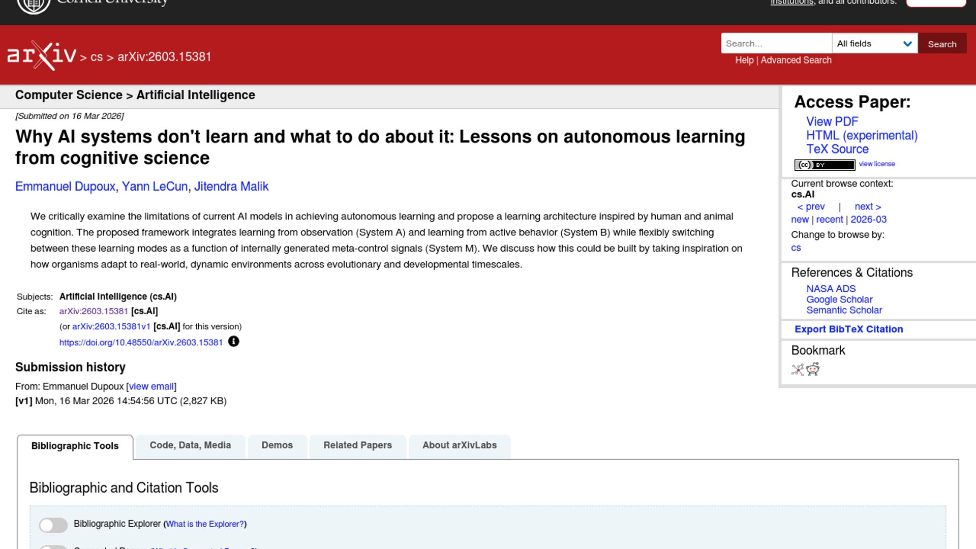 Emmanuel Dupoux, Yann LeCun, and Jitendra Malik propose a new three-system architecture to move beyond static, human-dependent AI toward truly autonomous, embodied learners. The paper argues that current MLOps pipelines are a crutch that prevents models from interacting with and understanding the physical world.