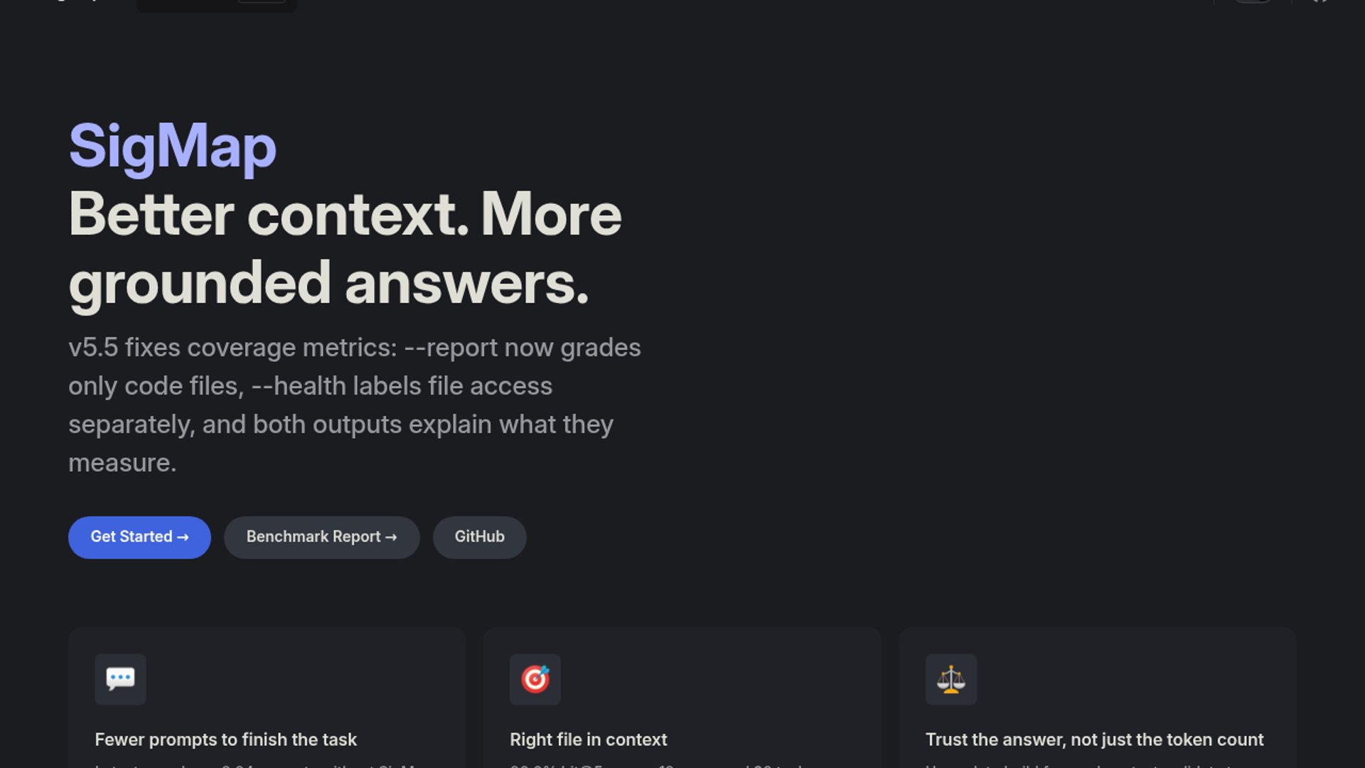 SigMap reports that signature-only TF-IDF retrieval across function and class surfaces reached 80% hit@5 on 90 tasks from 18 repos, while cutting context by 98.1% on average. The result argues that for some code-search workflows, identifiers and shapes carry enough signal to delay or skip embeddings entirely.