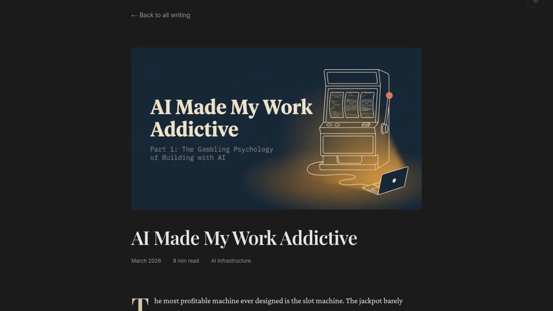 - –This has implications for developer wellbeing and productivity tooling — if AI tools are genuinely addictive, that's both a feature and a risk