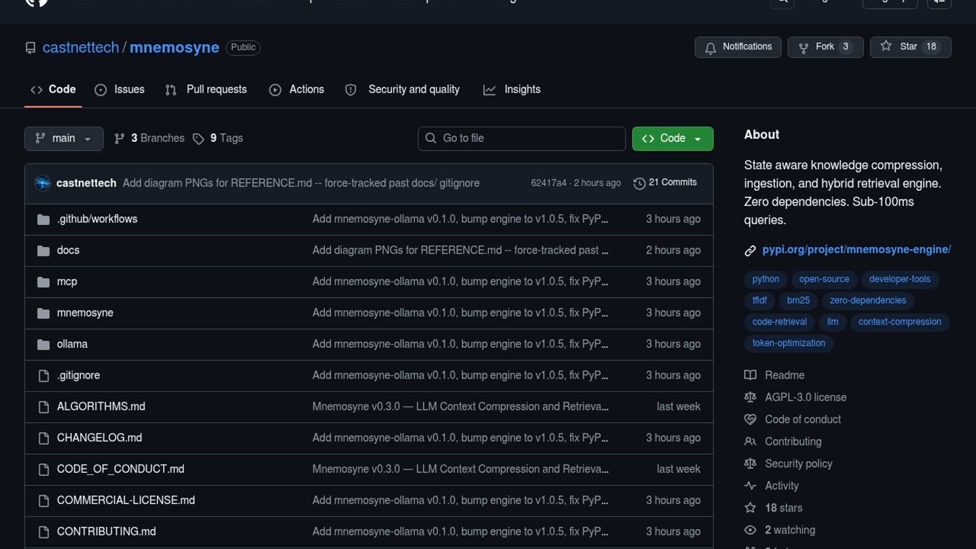 mnemosyne-ollama is an open-source bridge connecting Ollama to the Mnemosyne retrieval engine for zero-config local code search. It uses a 6-tiered hybrid retrieval system to provide models with accurate code citations and ranked chunks without external vector databases.