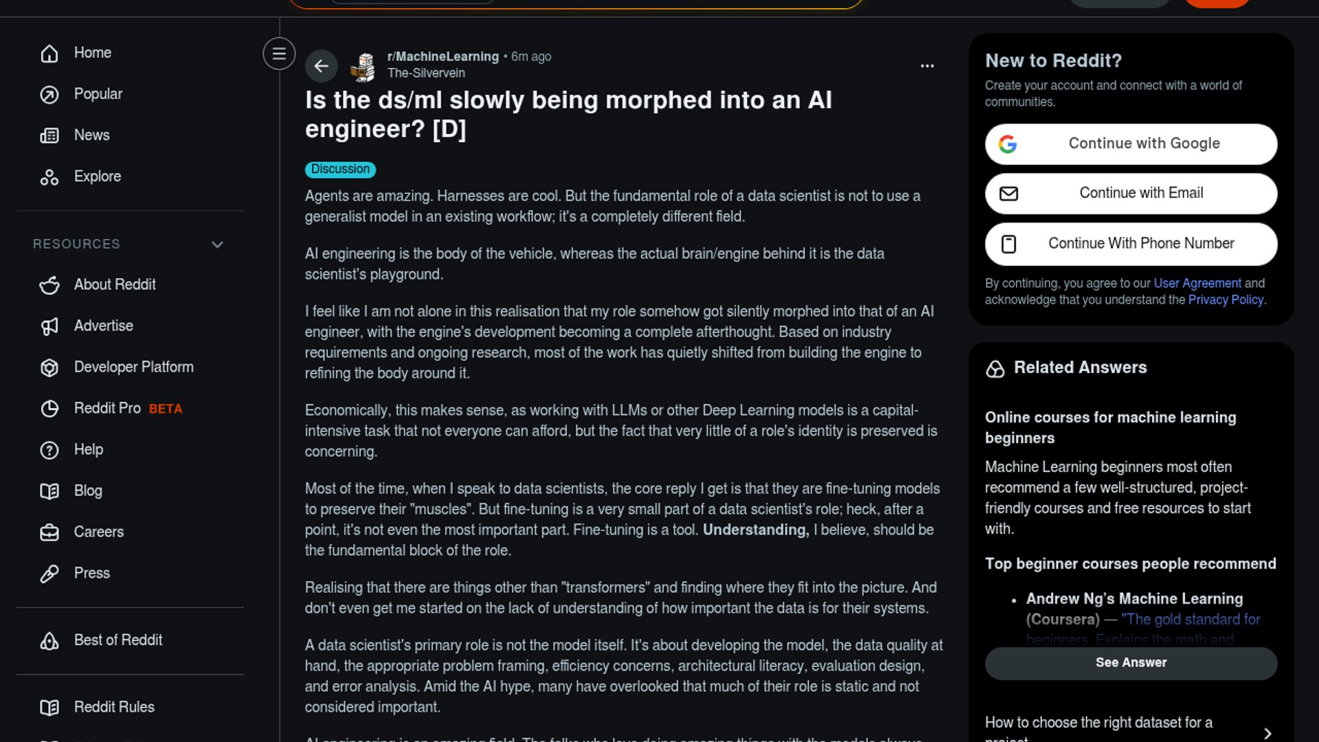 The complaint is real, but the cleaner read is that the market is splitting data science into two tracks: product/system builders and deeper modeling specialists. Companies are hiring hard for AI fluency now, but that does not mean the scientific side is obsolete.