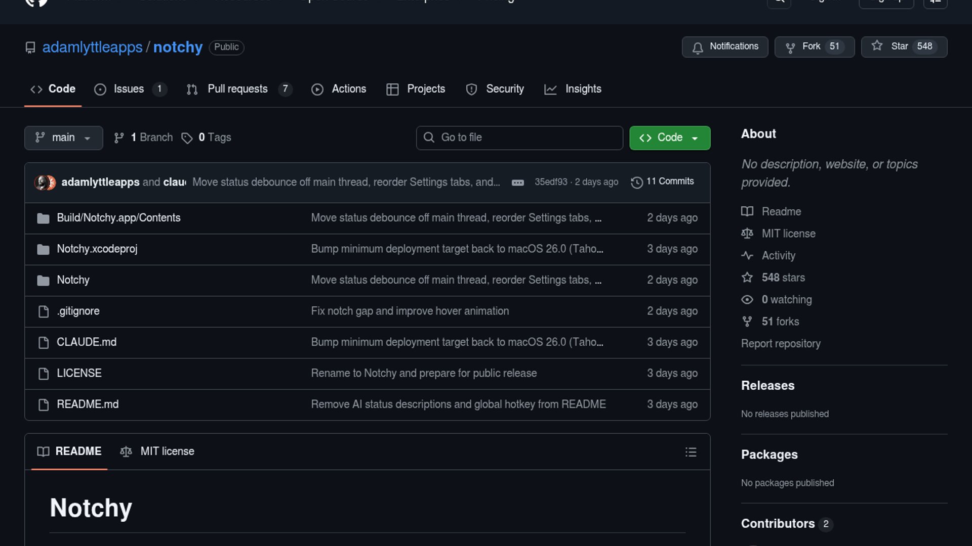 Notchy is a macOS menu bar app that embeds Claude Code into the MacBook notch and opens a floating terminal panel for working sessions. It automatically detects open Xcode projects and supports multiple Claude Code sessions side by side.