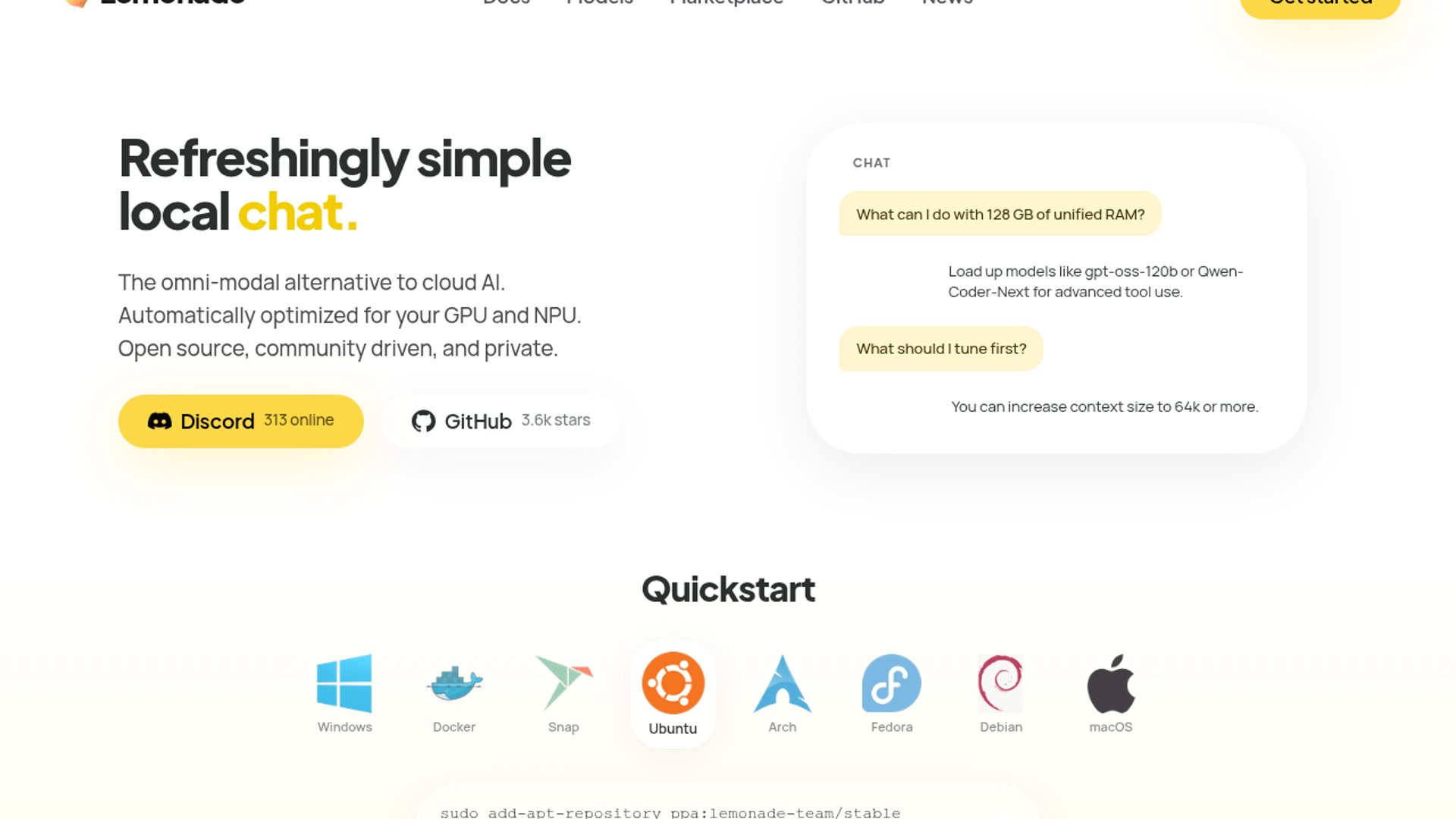 - –If Lemonade keeps breaking, the lowest-friction escape hatch is usually a more mainstream local stack like Ollama or plain llama.cpp paired with Open WebUI, even if it means less integrated polish.