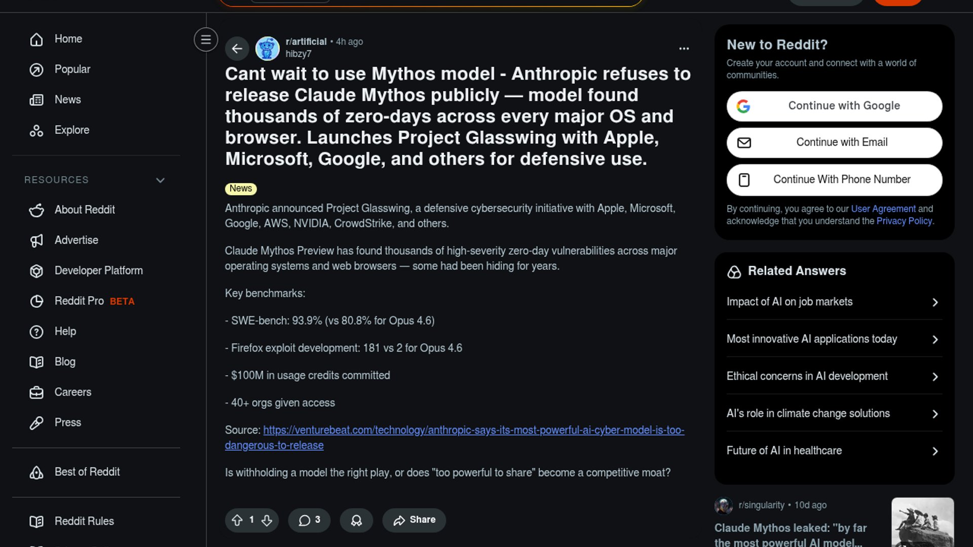 - –If Mythos really finds zero-days at this scale, public release would be a liability as much as a feature
