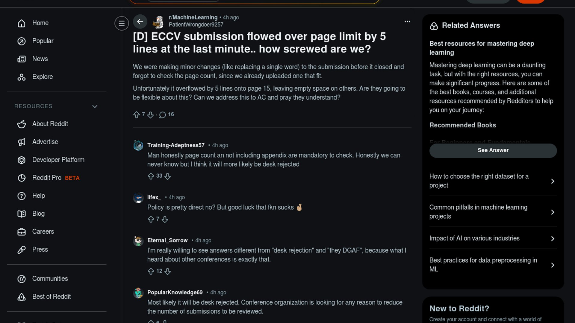 A Reddit discussion in r/MachineLearning asks how badly an ECCV submission might be penalized after accidentally spilling five lines onto a 15th page. The anxiety is grounded in ECCV’s official submission policy, which caps papers at 14 pages excluding references and says overlength papers may be rejected without review.