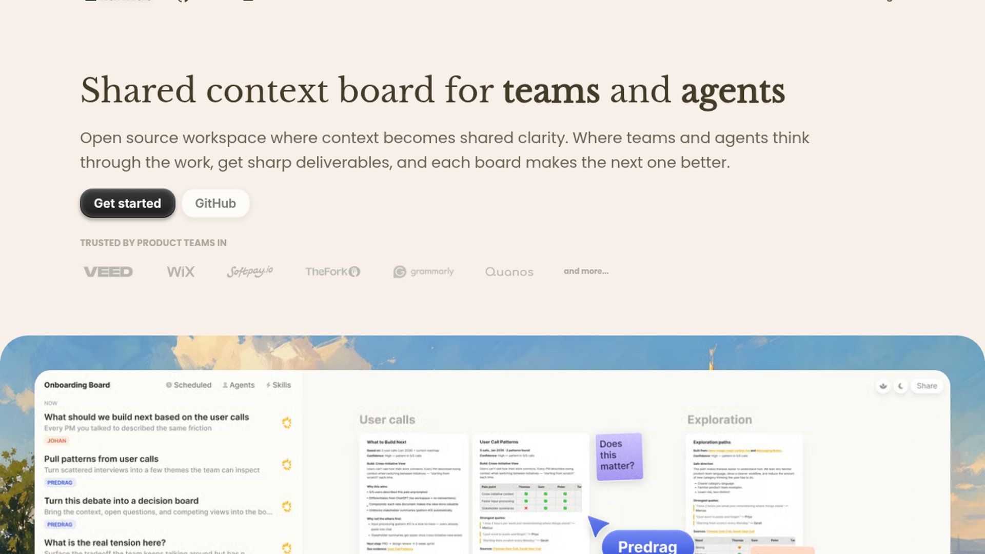 Kanwas is an open-source multiplayer workspace where teams and AI agents share the same boards, documents, evidence, and decisions. The pitch is persistent context that compounds over time, instead of chat threads and docs that decay.