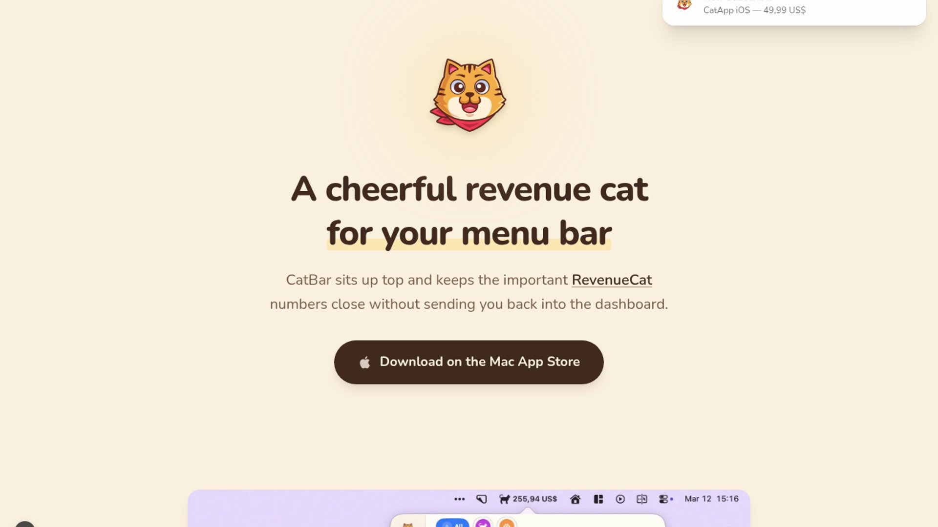 CatBar puts RevenueCat in menu bar
