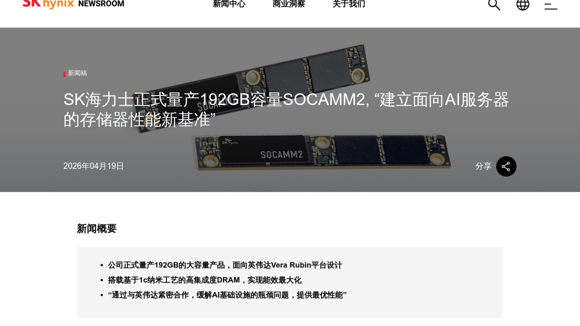 sk-hynix192gb-socamm2lpddr5xai-serversnvidiavera-rubinmemorydram-moduleinfrastructure