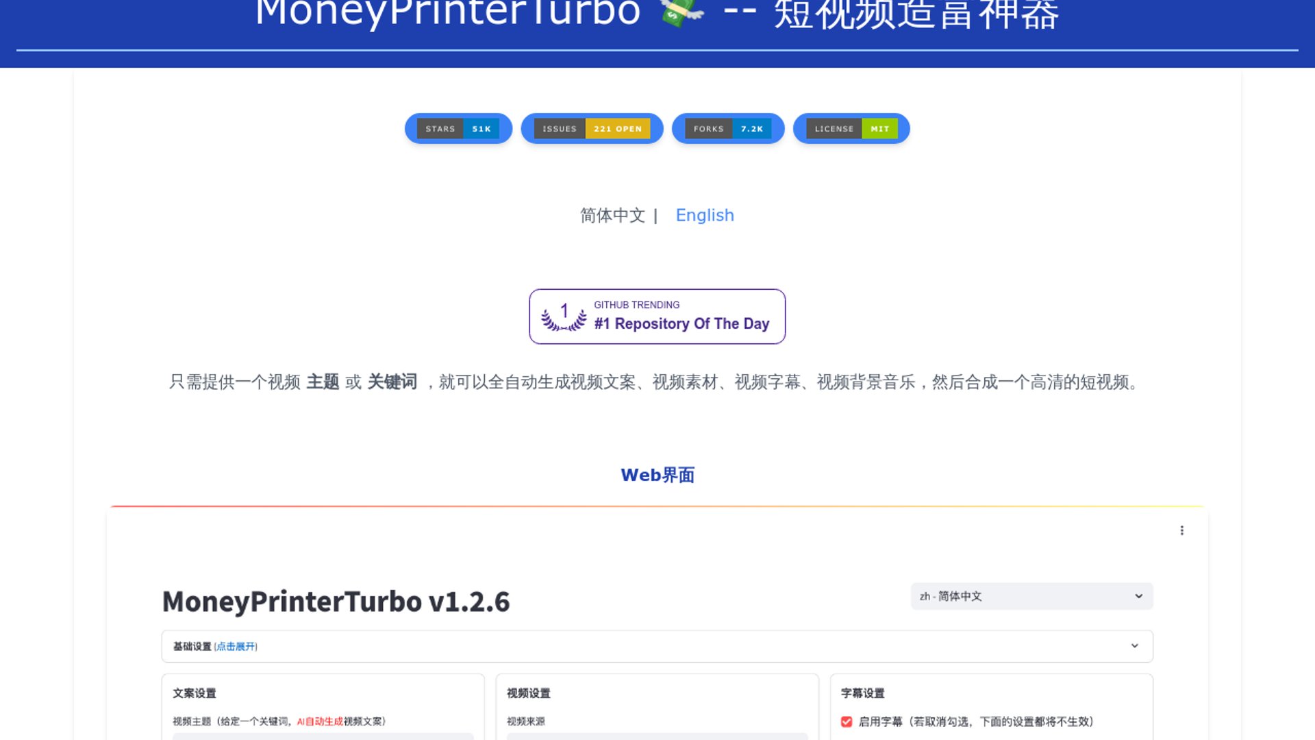 moneyprinterturbovideo-genllmautomationapiopen-sourceself-hosted
