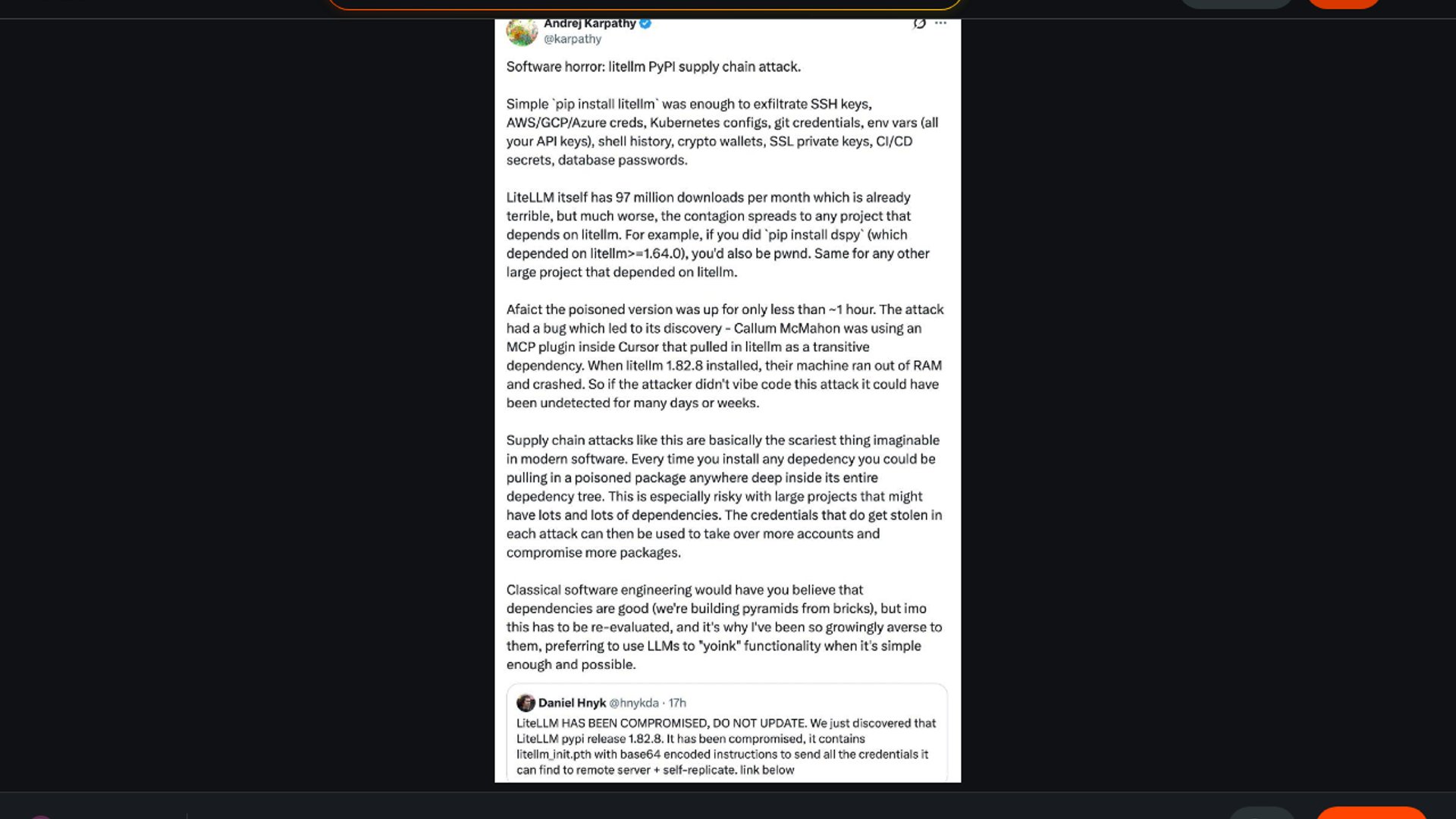 - –The bigger lesson is supply-chain hygiene: pin exact versions, isolate secrets, and assume any gateway dependency can become a blast radius multiplier.