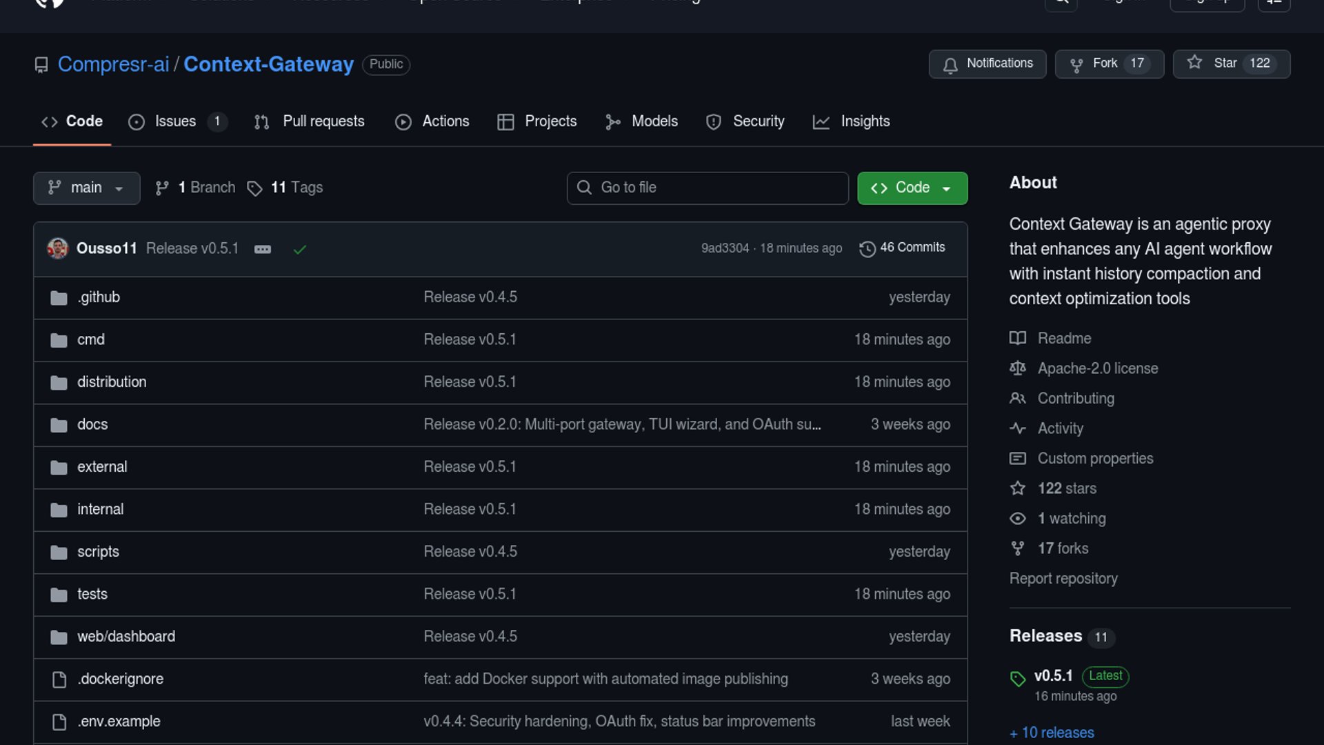 Context Gateway is an open-source proxy from Compresr that sits between AI coding agents and the LLM API, compressing history and tool output in the background to cut latency and token spend. It targets Claude Code, Cursor, OpenClaw, and custom agent workflows with a quick CLI-style setup.