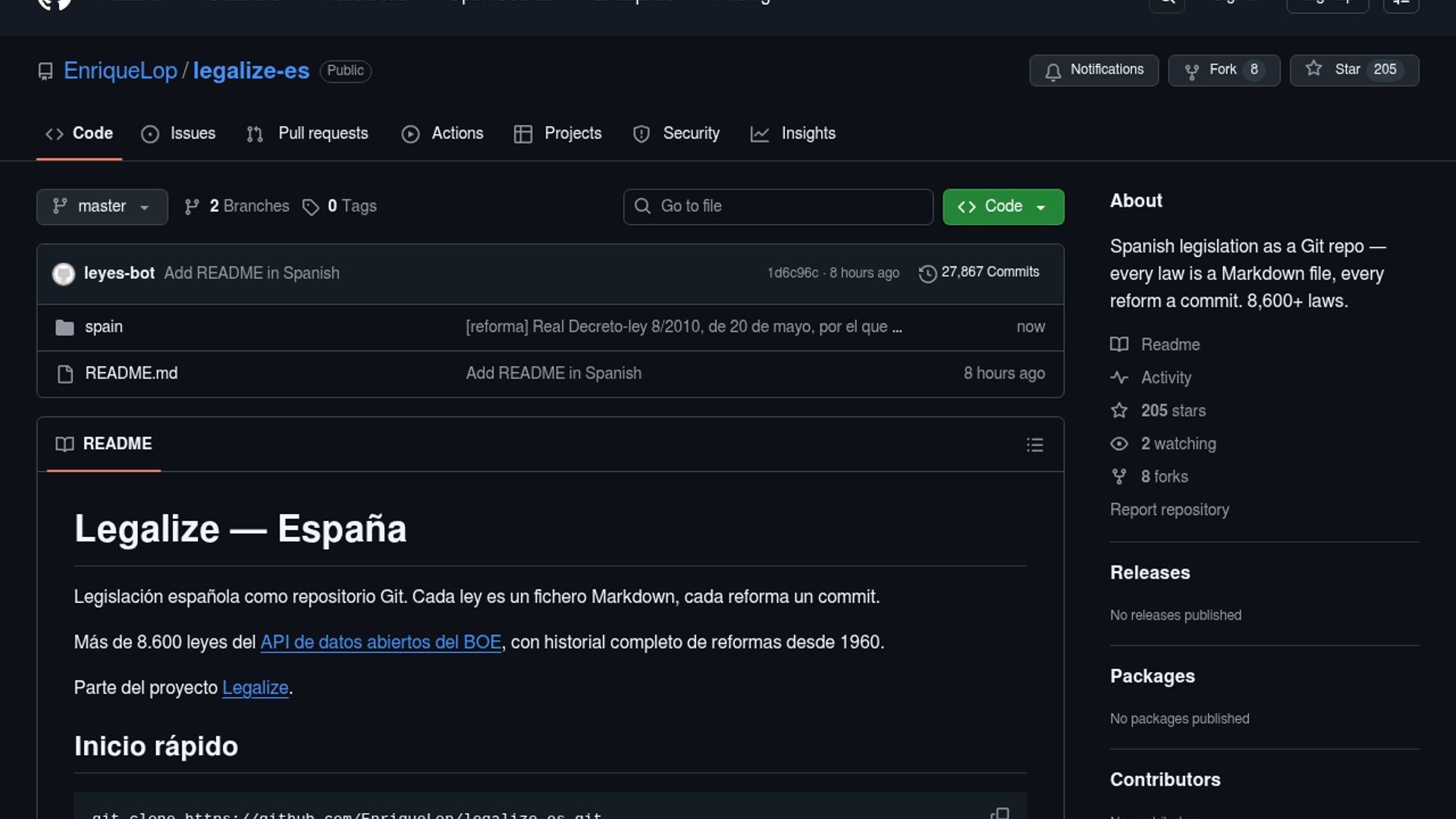 legalize-es turns Spain's consolidated state legislation into a Git repository, treating each reform as a commit since 1960. It gives legal researchers standard developer tools like git diff and git log for exploring that history.