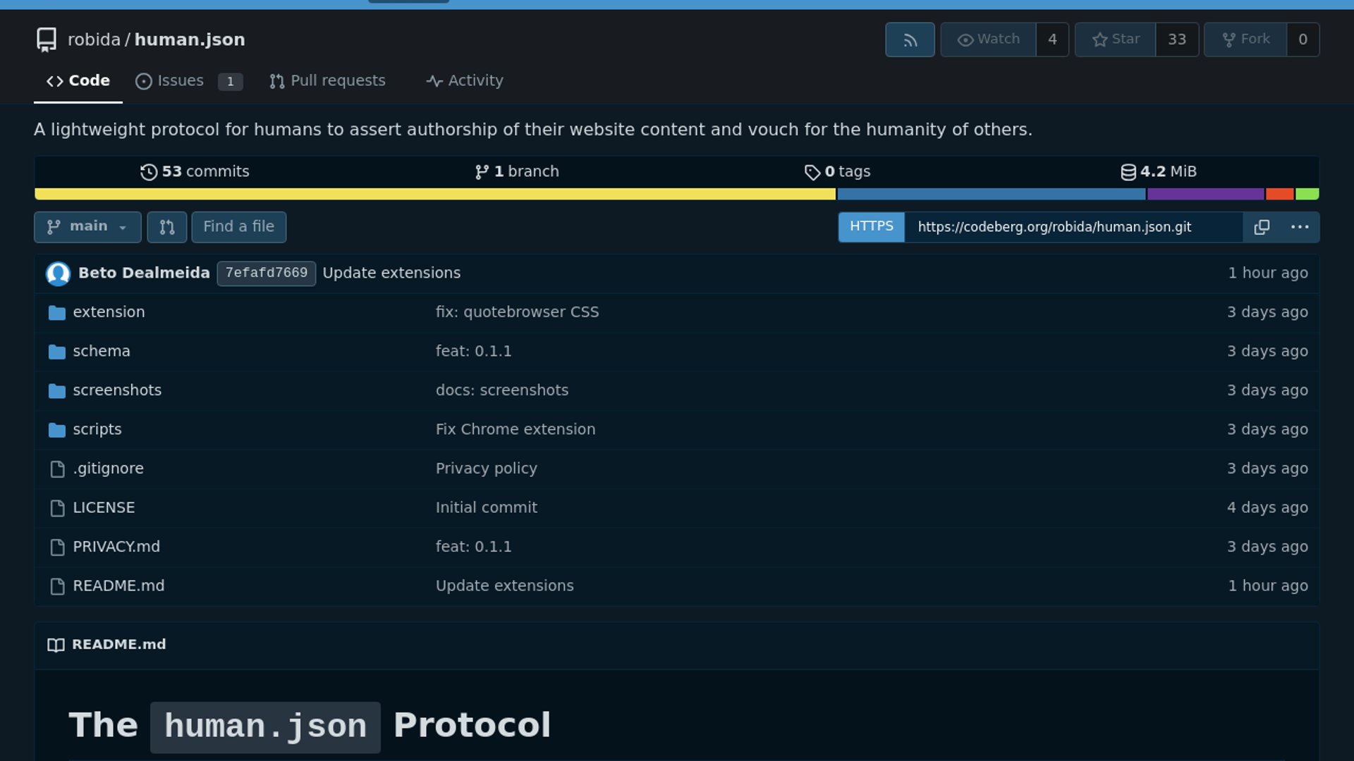 human.json is a draft open protocol and open-source project that lets site owners publish a `human.json` file asserting human authorship and vouching for other trusted sites. It matters because it tries to answer the AI slop problem with lightweight social trust and browser tooling instead of heavyweight identity systems.