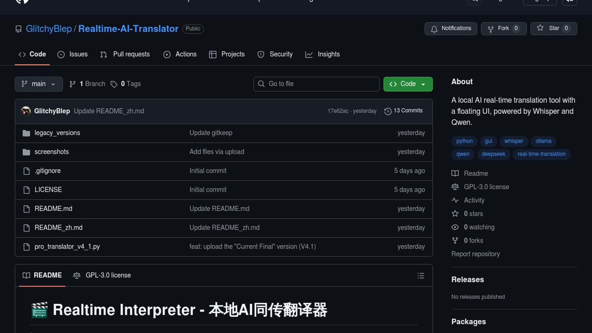 A LocalLLaMA builder shared an open-source macOS offline simultaneous translator that chains `faster-whisper` and Ollama `qwen3.5:9b` in a three-thread pipeline with a PyQt floating subtitle UI and 29-language support. The project is functional but currently stuck at roughly 3-5s end-to-end delay and unreliable Aggregate Device capture (BlackHole + mic), and is asking the community for optimization guidance.