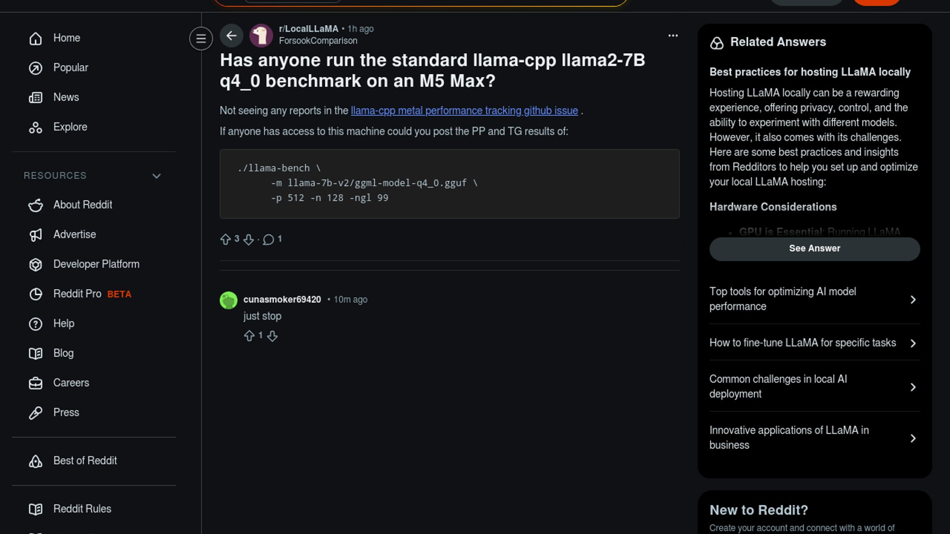 - –The requested `llama-bench` command is standardized, so any reply will slot cleanly into the llama.cpp Apple Silicon tracking thread.