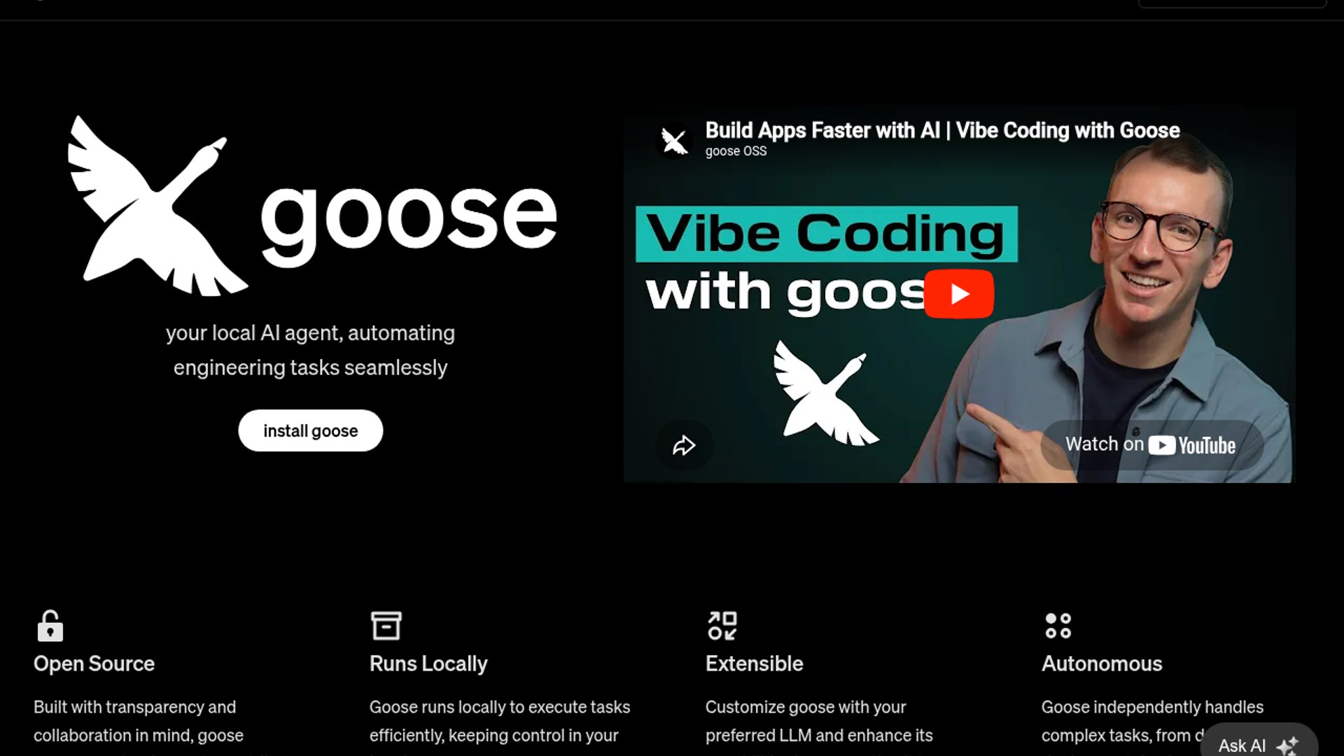 Goose is a category-defining open-source agent that prioritizes local execution and extensibility via the Model Context Protocol.