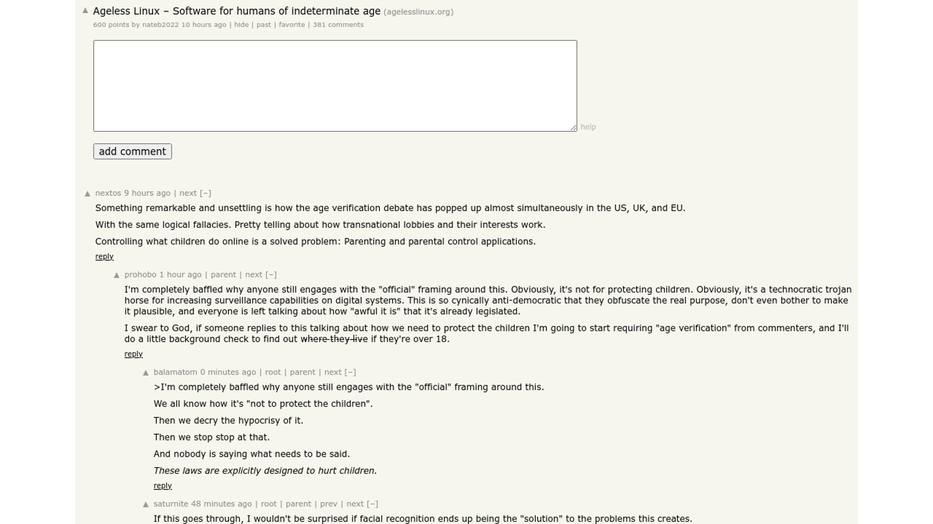 Ageless Linux is a Debian-based distro created as deliberate civil disobedience against California's AB 1043 (Digital Age Assurance Act), which its creator argues inadvertently regulates Linux distributions. It refuses to implement any age-verification infrastructure and explicitly invites AG enforcement, arguing the law creates a compliance moat that crushes open-source projects while favoring large corporations.