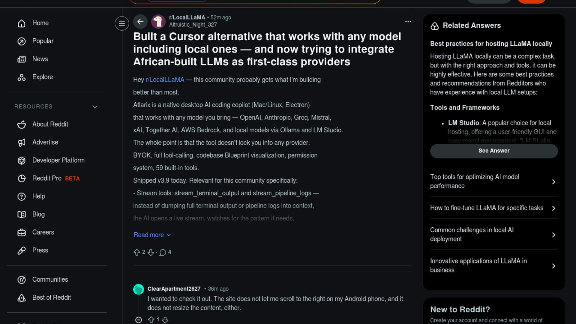 Atlarix, a Mac/Linux AI coding copilot from NorahLabs, ships v3.9 with stream tools that filter terminal and pipeline output before it hits the model — enabling even small local Ollama models to handle noisy dev environments. The update also brings AI clarifying questions to all models, conversation revert, and a GitHub Actions panel, plus a push to integrate African-built LLMs like Awarri's N-ATLAS and Lelapa AI's InkubaLM as first-class providers.