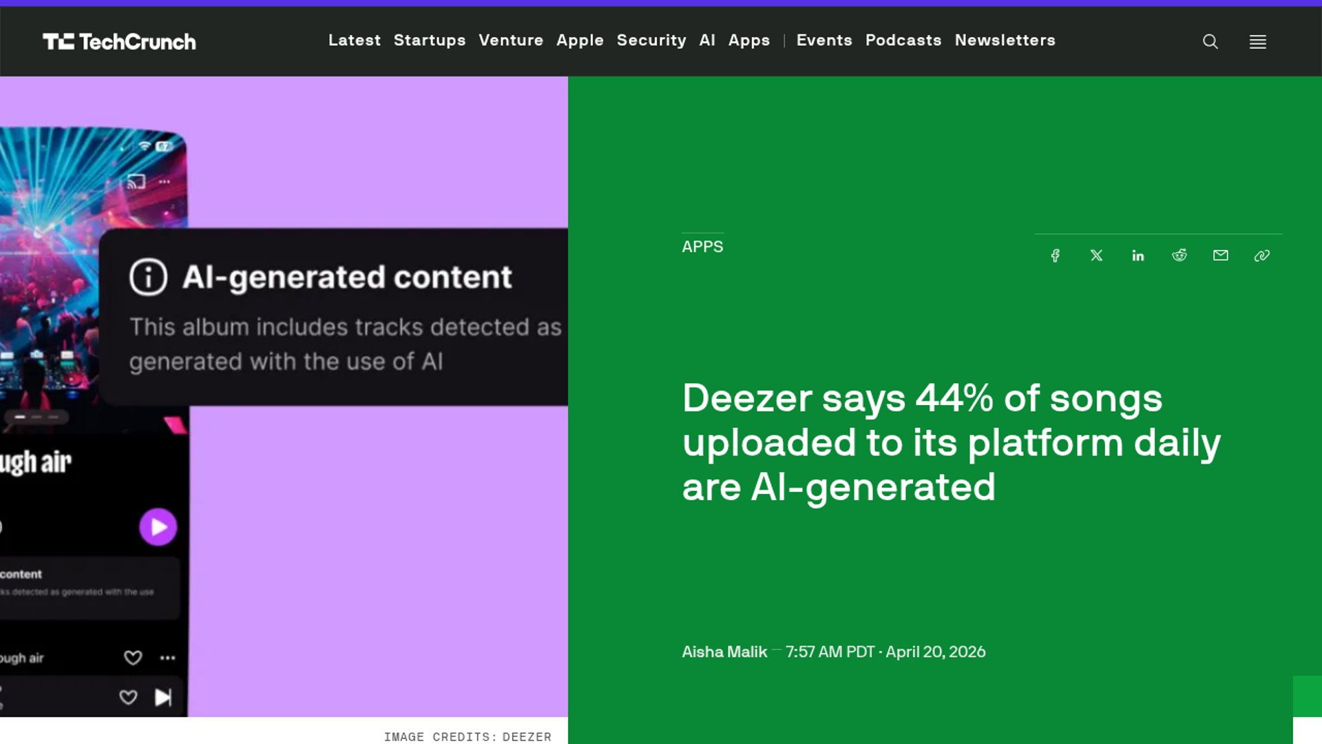 Deezer is turning its AI-music detection work into both a product stance and a business wedge: the catalog is getting flooded, but the consumption share is still tiny, which supports its argument that most of this content is spam/fraud rather than listener demand.