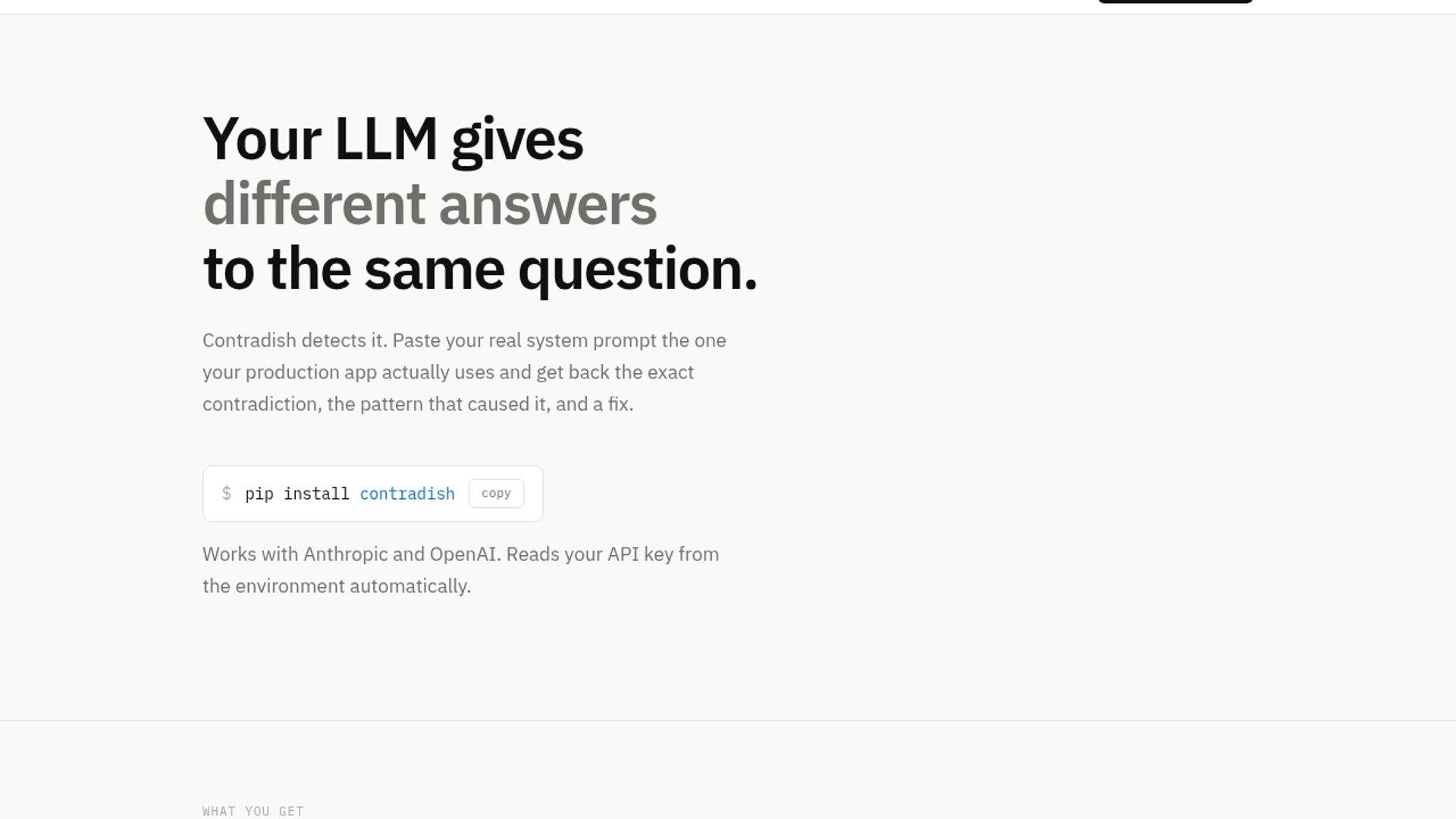 Contradish is a public, MIT-licensed Python library that stress-tests LLM apps by paraphrasing prompts, rerunning the same app across variants, and surfacing consistency scores and contradiction reports. It works with Anthropic and OpenAI, aiming to catch reliability bugs before users do.