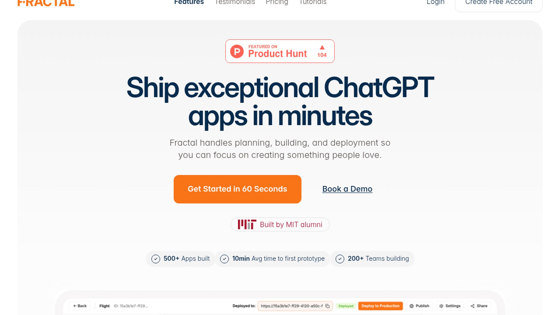 Fractal is a no-code platform for shipping "ChatGPT Apps"—interactive, UI-rich tools that run directly inside ChatGPT via the Model Context Protocol (MCP). By automating architecture planning, coding, and deployment, Fractal enables developers to move beyond text-based GPTs into a full, chat-native app ecosystem.