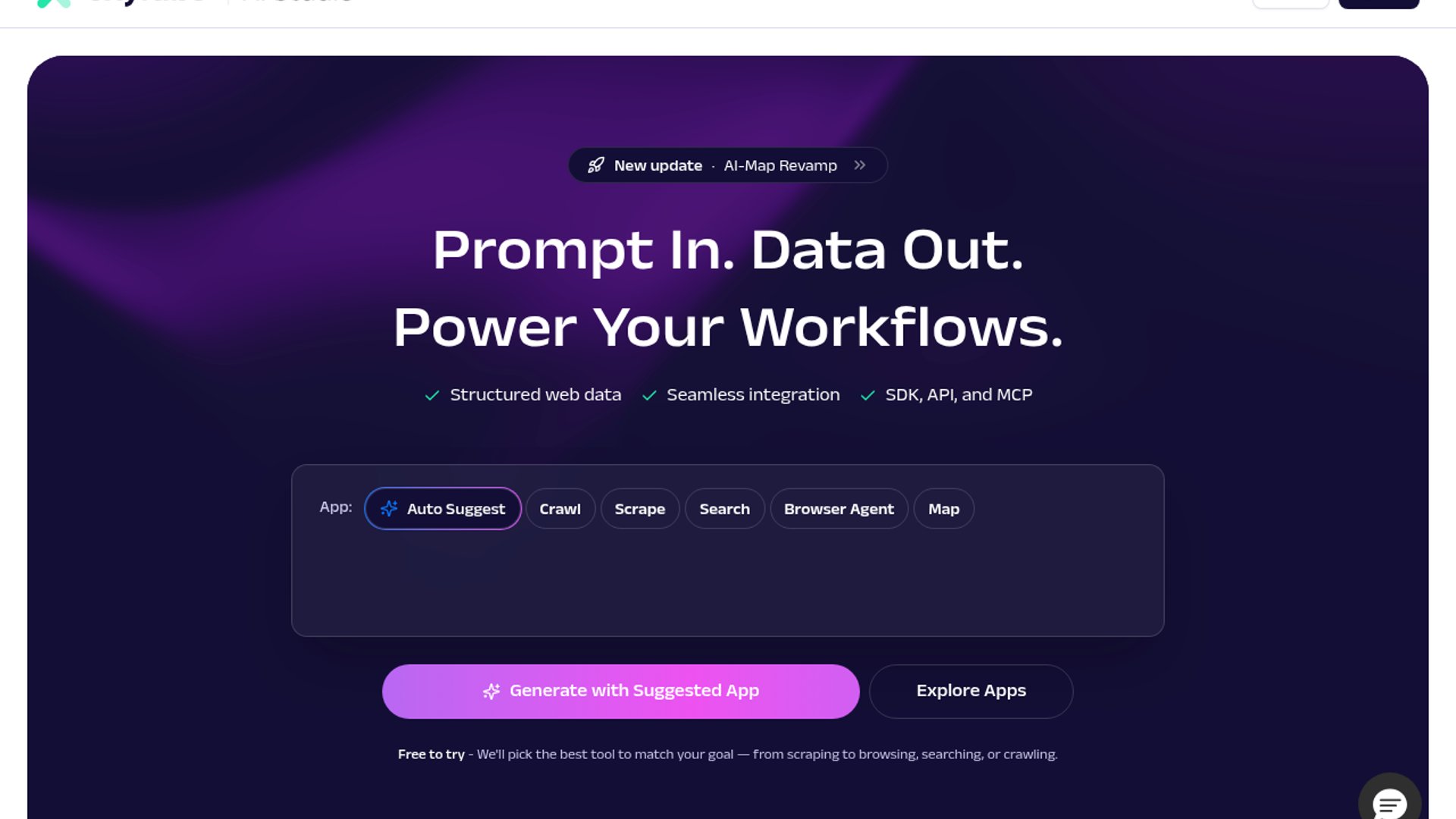 - –AI-Scraper handles single pages, AI-Crawler handles multi-page domains, Browser Agent covers interactive flows, AI-Search handles discovery, and AI-Map handles URL mapping.