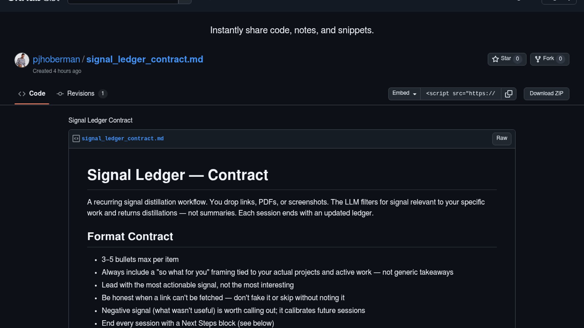 Signal Ledger is a Claude-driven reading workflow that turns batches of links into project-specific distillations instead of generic summaries. After 29 sessions and 200+ sources, the author says a written contract, corroboration rules, and monthly audits made the ledger compound until the single file got too large and needed separate theme docs.